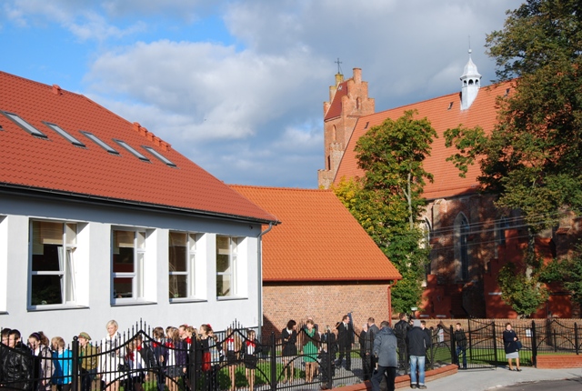 Rozpoczęcie uroczystości przed budynkiem szkoły