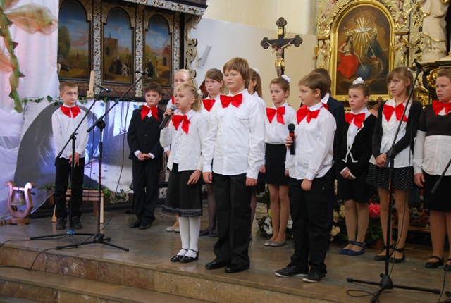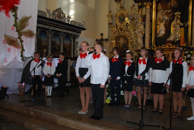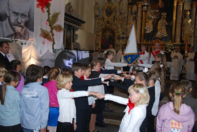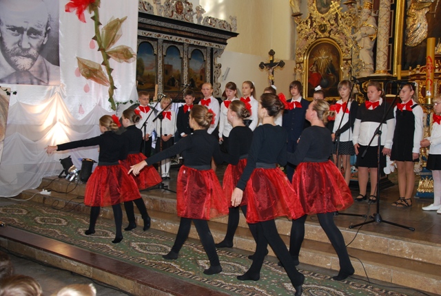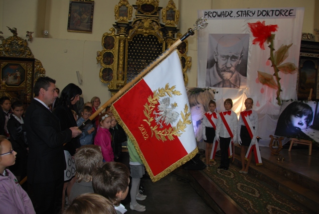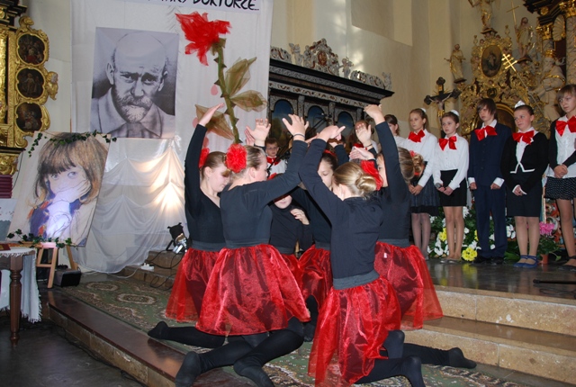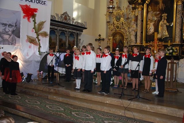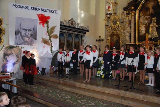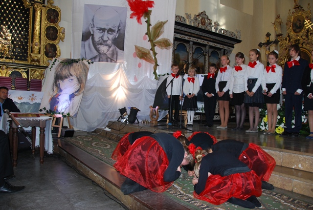 Występ uczniów Szkoły Podstawowej im. Janusza Korczaka w Żarnowcu podczas uroczystej Eucharystii. Tytuł przedstawienia: „Prowadź, Stary Doktorze”.
