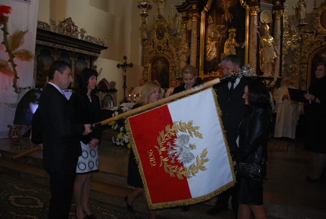 Prezentacja Sztandaru przez Rodziców Chrzestnych: Panią Grażynę Żaczek i Pana Henryka Żaczka