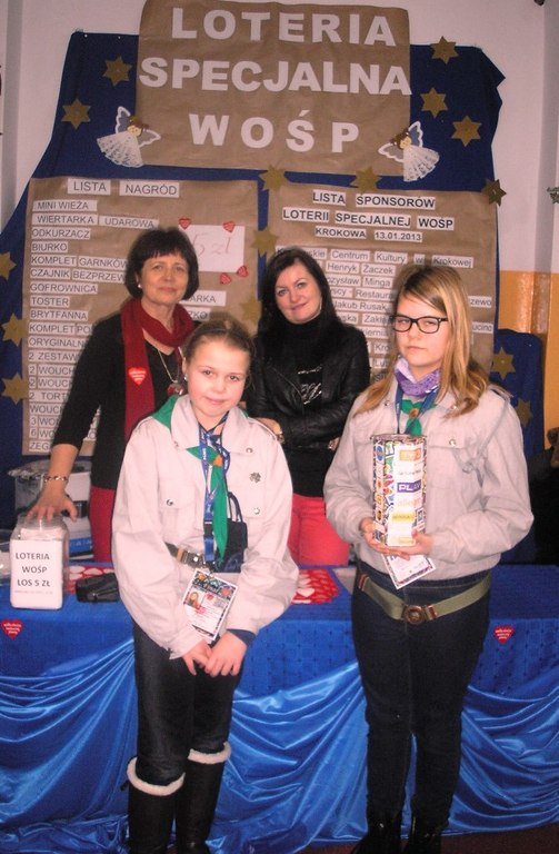 Dziękujemy wszystkim, którzy wspierają WOŚP już po raz 21 - rodzicom, którzy upiekli ciasta, dzieciom, które przyniosły fanty na loterię,harcerzom, którzy kwestowali i nauczycielom, którzy pracowali przed i podczas Orkiestry. Dziękujemy i liczymy na udział w kolejnych latach.