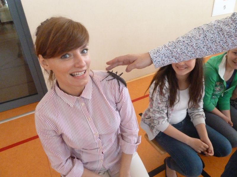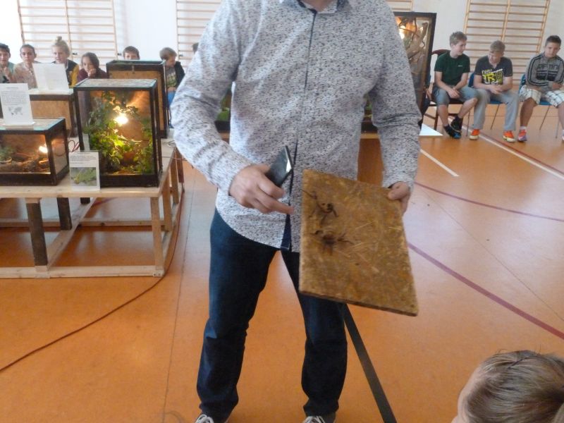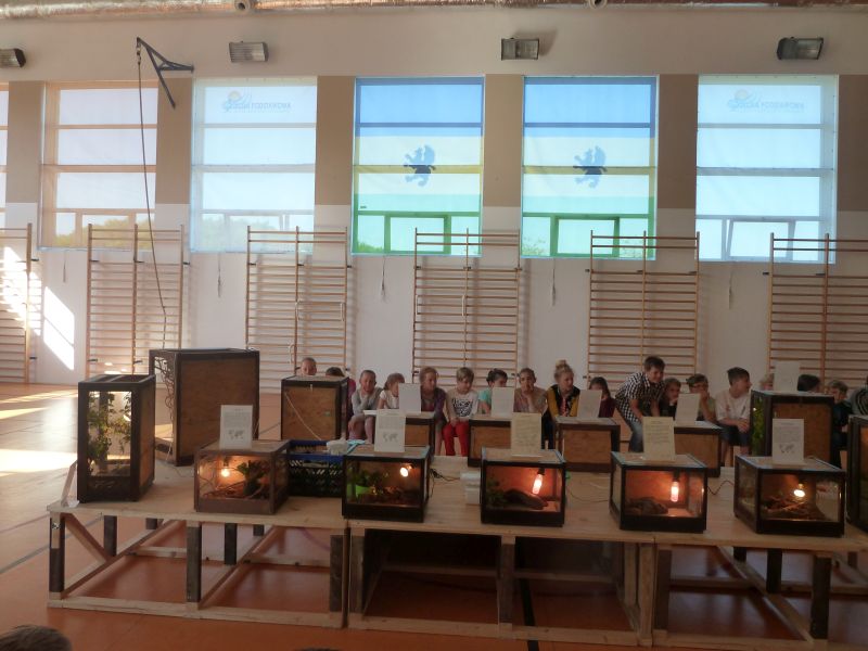 Podczas „Żywej lekcji przyrody” uczniowie mogli dowiedzieć się o właściwościach przystosowawczych danych okazów, ich wyglądzie i zachowaniu. Uczniowie mieli możliwość zaobserwowania, jak kameleon zjada pasikonika, straszyki spacerowały po rękach odważnych uczniów. Skrajne emocje i piski dziewczynek budziły pająki i wije. Po zakończonej lekcji uczniowie zadawali prowadzącemu pytania, na które pan Jarosław wyczerpująco odpowiadał. Dzieci mogły zakupić sobie własnego patyczaka lub straszyka.