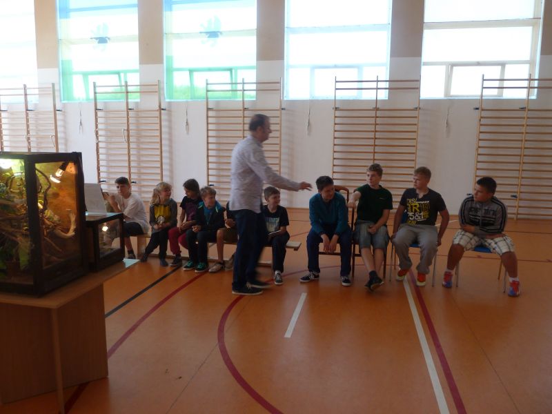 W środę 21 maja 2014r. w Szkole Podstawowej im. Janusza Korczaka w Żarnowcu odbyła się „Żywa lekcja przyrody” prowadzona przez Jarosława Rejmera, hodowcę zwierząt egzotycznych.