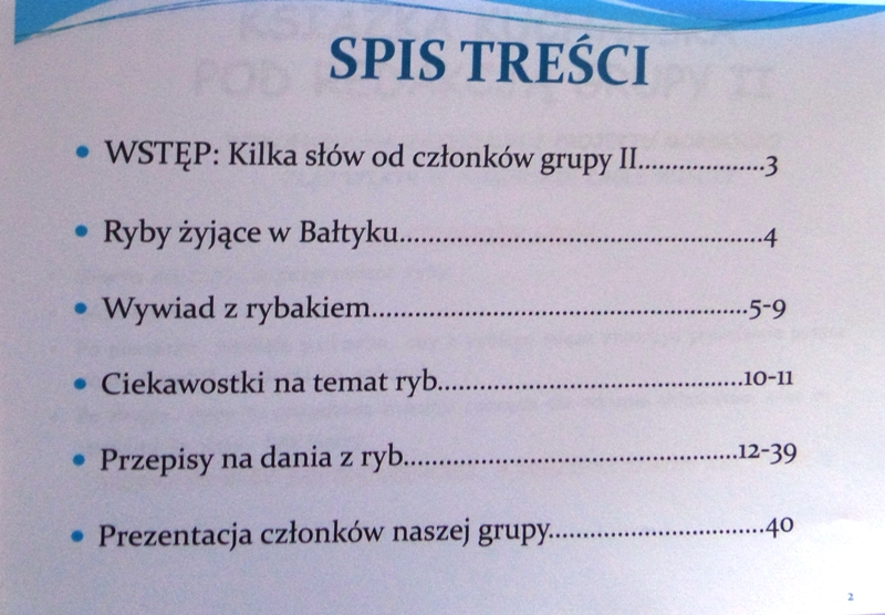 Grupa II przygotowała książkę kucharską w wersji papierowej i multimedialnej oraz degustację potraw z ryb według własnych, autorskich przepisów.