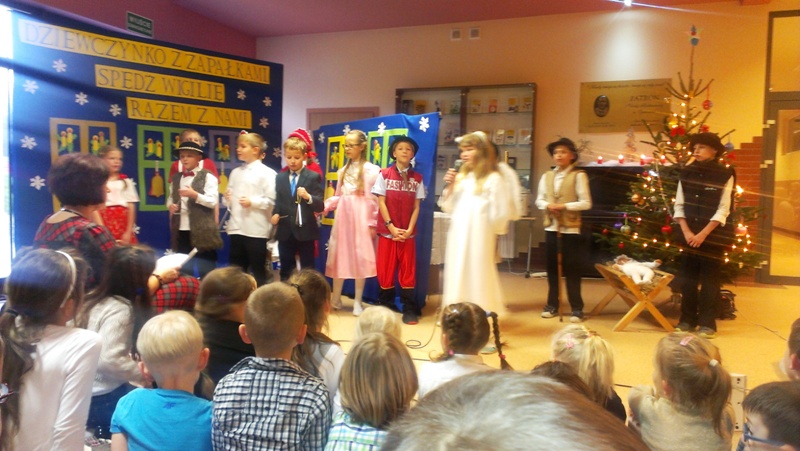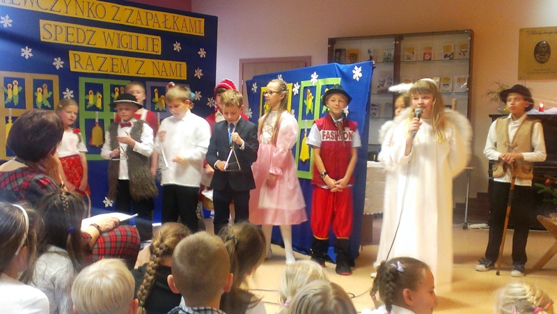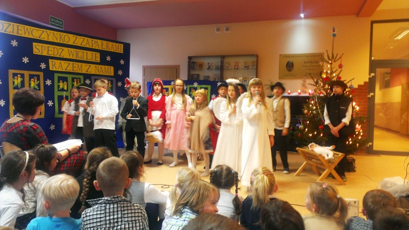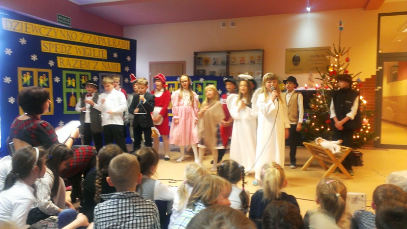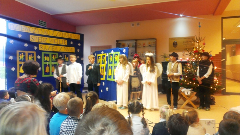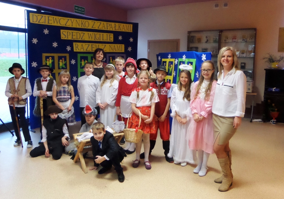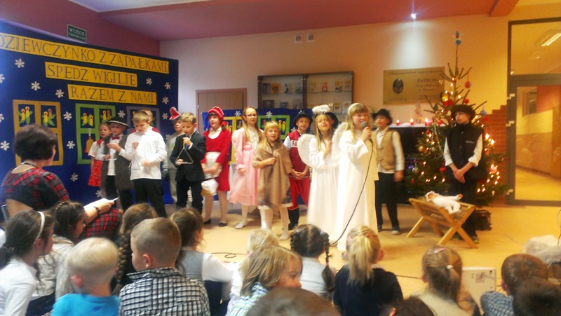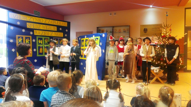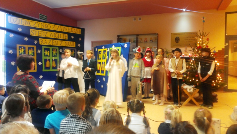 Dnia 19 grudnia 2014r. uczniowie klasy III pod kierunkiem p. Elżbiety Trelli i p. Marii Borskiej zaprezentowali społeczności naszej szkoły przedstawienie wigilijne pt.,, DZIEWCZYNKO Z ZAPAŁKAMI SPĘDŹ WIGILIĘ RAZEM Z NAMI".