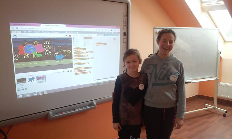 Klasa 4 uczy klasę 1 kodować w scratch.