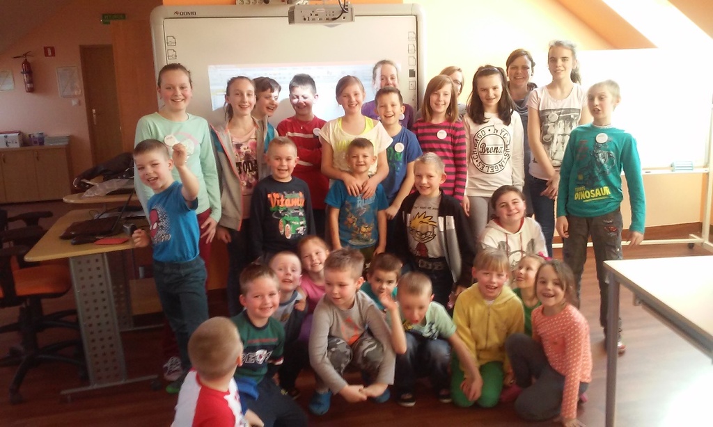 Nasi Mistrzowie cały czas przekazują swoją wiedzę ucząc młodszych kolegów kodowania. Tym razem w rolę nauczycieli wcieliły się Paulina Greń i Natalia Ewald. Uczyły najmłodszych uczniów naszej szkoły czyli klasę \"0\". Każdy uczeń miał przy sobie pomocną dłoń, która ich nakierowała, pokazała gdzie kliknąć, która nad nim czuwała, a przede wszystkim uczyła.