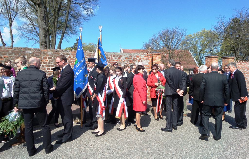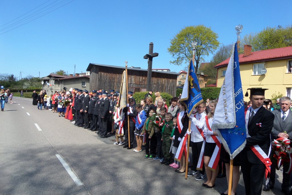 Po mszy św. wszyscy uczestnicy przemaszerowali pod pomnik Matki Bożej Królowej Polski znajdujący się w centrum Żarnowca. Wójt Gminy Krokowa Henryk Doering przywitał zgromadzonych i zaprosił przedstawiciela Związku Piłsudczyków, który przypomniał fakty historyczne związane z uchwaleniem konstytucji 3 Maja - pierwszej konstytucji w Europie i drugiej na świecie. Głos zabrał również wiceminister rolnictwa Kazimierz Plocke, który wręczył na ręce sołtysa wsi Żarnowiec pamiątkową replikę Konstytucji 3 Maja oraz 3 flagi: narodową, kaszubską i unijną. Następnie poszczególne delegacje złożyły wiązanki kwiatów u stóp kaplicy.