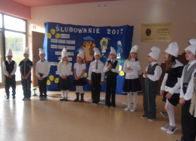 Sprzyja temu akt przyjęcia pierwszaków do społeczności uczniowskiej, tzw. ślubowanie i pasowanie na uczniów. Przygotowania do tego wydarzenia trwały już od tygodni. Uczniowie, pod kierunkiem Marii Borskiej – wychowawczyni klasy I ćwiczyły wiersze i piosenki, każdy pragnął mieć choć maleńki udział w tak wielkim przedsięwzięciu.
