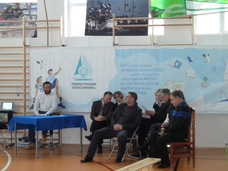 Zajęcia krótkim wstępem informacyjnym rozpoczęła pani dyrektor Szkoły Podstawowej im. Janusza Korczaka w Żarnowcu mgr Aleksandra Obszyńska i gorąco powitała zebranych. Głos zabrał również Wójt gminy pan Henryk Doering oraz gość honorowy pan Mateusz Kusznierewicz, który przybliżył uczniom dzieje swej kariery żeglarskiej.