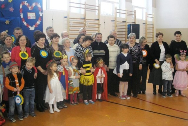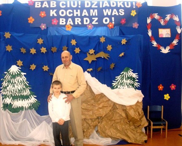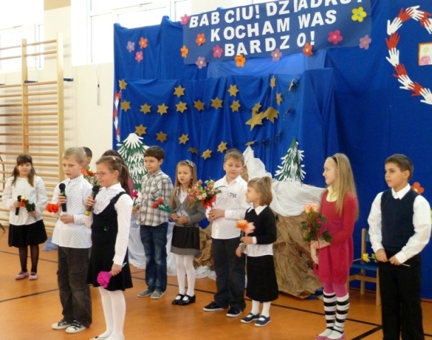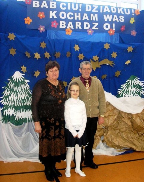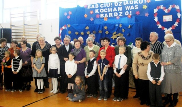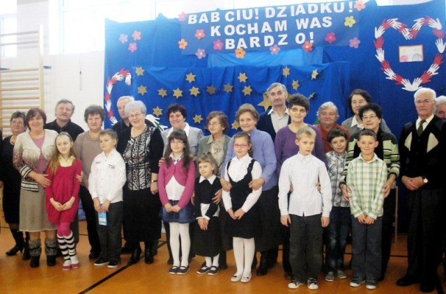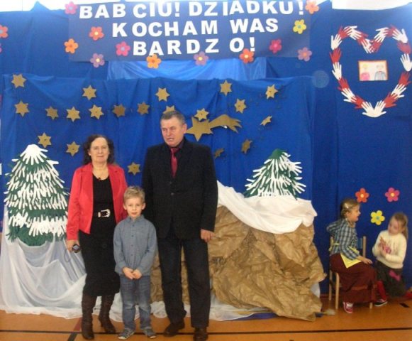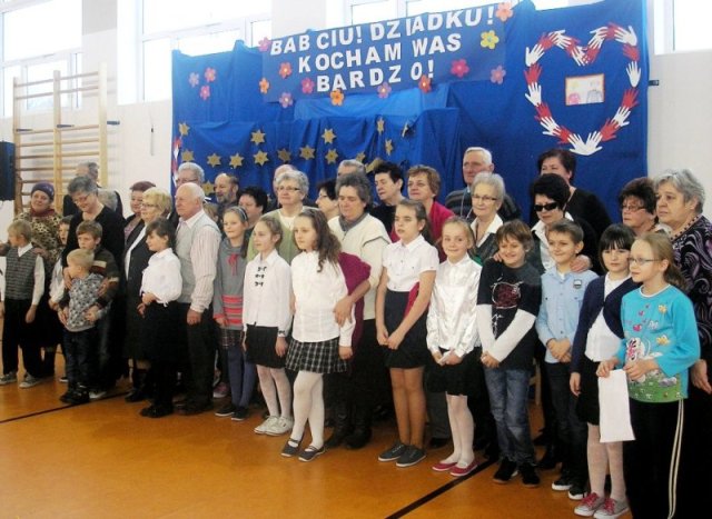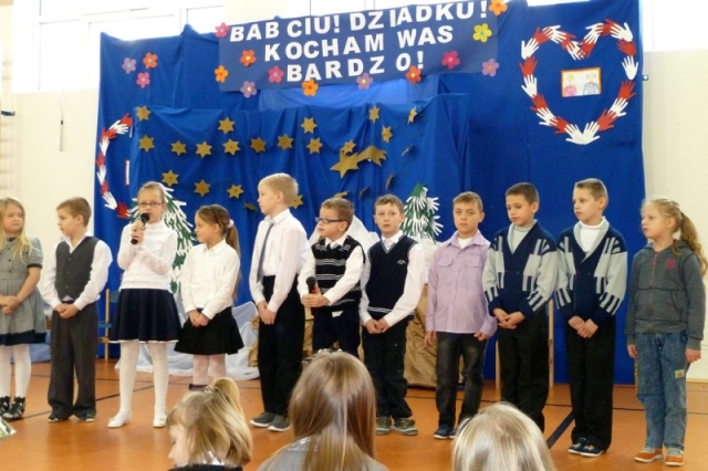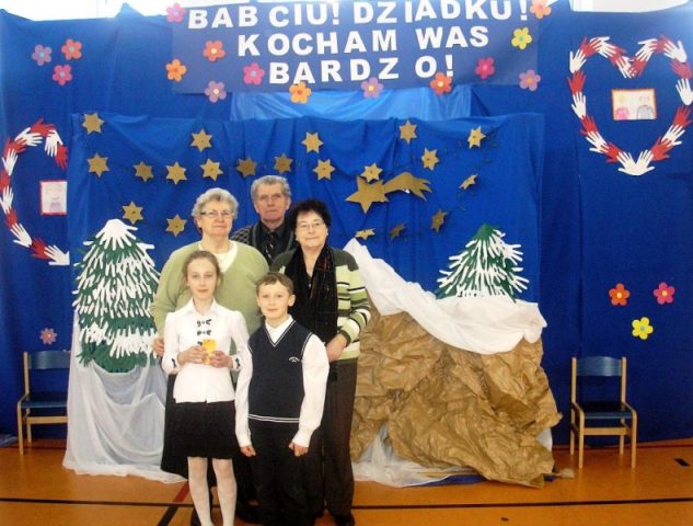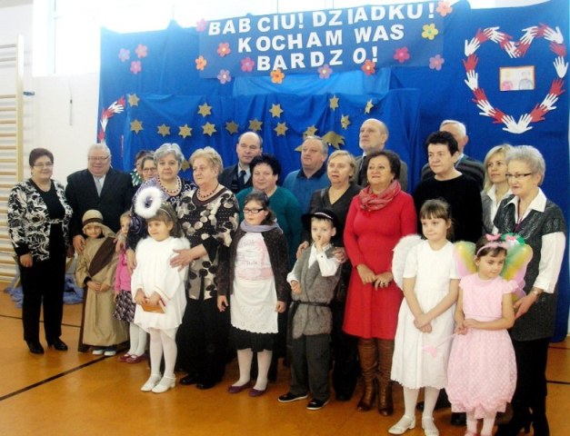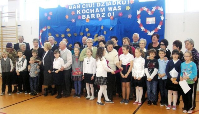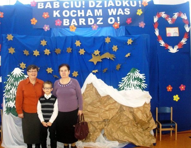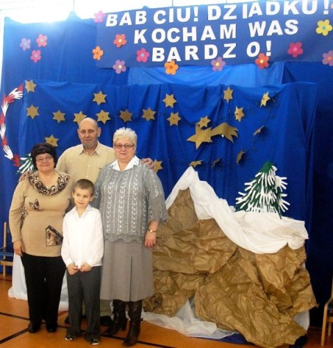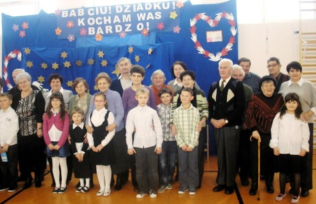 Babcia i Dziadek to dwie osoby miłe sercu każdego wnuka, dlatego też, co roku 21 i 22 stycznia nasze serca biją mocniej. A wszystko to z jednego powodu: Święta Babci i Dziadka. Nasi mili goście przybyli do nas 21 stycznia w Święto Babci. Na naszych kochanych Dziadków czekały nie tylko wnuczęta, ale też pięknie udekorowana sala gimnastyczna, w której odbyła się uroczystość i kolorowo nakryte stoły. Uroczystość rozpoczęła Pani Dyrektor Aleksandra Obszyńska, która bardzo serdecznie powitała naszych miłych gości. Po czym dzieci z klas 0-III z wielkim przejęciem prezentowały program artystyczny przygotowany specjalnie na tę okazję. Dzieci najmłodsze, czyli 5-6-latki pokazały przedstawienie jasełkowe, klasa I wyrecytowała życzenia i zaśpiewała piosenkę, klasa II zaprezentowała piękną recytację wierszy o Babci i Dziadku oraz zaśpiewała piosenkę, a klasa III zabawiała dziadków wesołymi żarcikami i również zaśpiewała piosenkę. Było poważnie, wzruszająco i bardzo wesoło. Przedstawienie przyjęto burzą braw. Dziadkowie byli dumni ze swych wnucząt. Prawdziwe wzruszenie ogarnęło wszystkich Dziadków, gdy wnuczęta obdarowały ich własnoręcznie wykonanymi laurkami i upominkami. Potem była wspólna zabawa, uściski i pamiątkowe zdjęcia z Dziadkami. W trakcie całej uroczystości Dziadkowie delektowali się wypiekami przygotowanymi przez mamy naszych uczniów. Serdecznie dziękujemy wszystkim Dziadkom, którzy przybyli na uroczystość z okazji Dnia Babci i Dziadka. Wychowawcom klas 0-III dziękujemy za przygotowanie dekoracji i części artystycznej uroczystości. Dziękujemy również wszystkim mamom, które jak zwykle aktywnie włączyły się w przygotowania uroczystości. Cała uroczystość została upamiętniona na zdjęciach. Zapraszamy wszystkich już za rok, a teraz proszę zajrzeć do naszej galerii zdjęć, aby jeszcze raz przeżyć ten miły, pełen niespodzianek dzień.