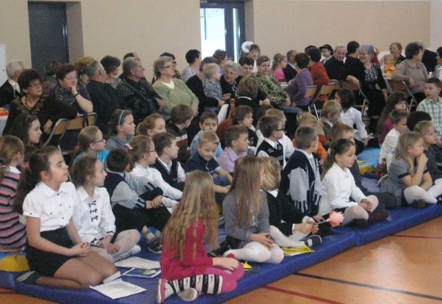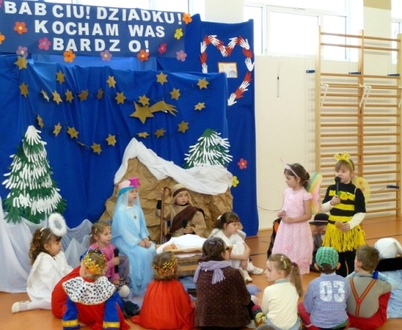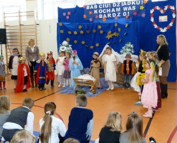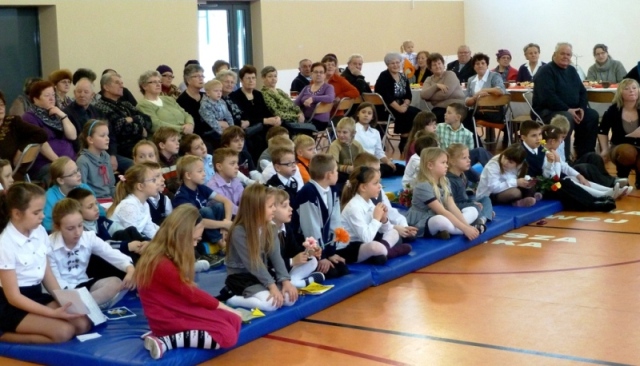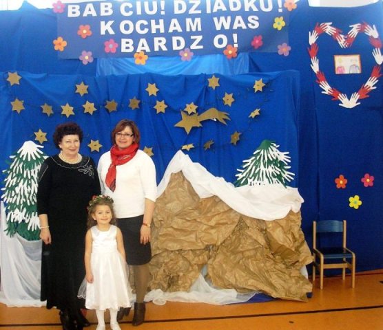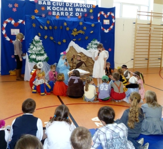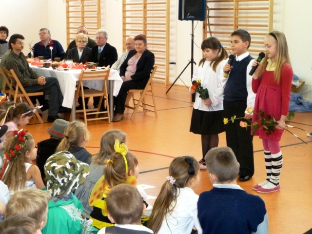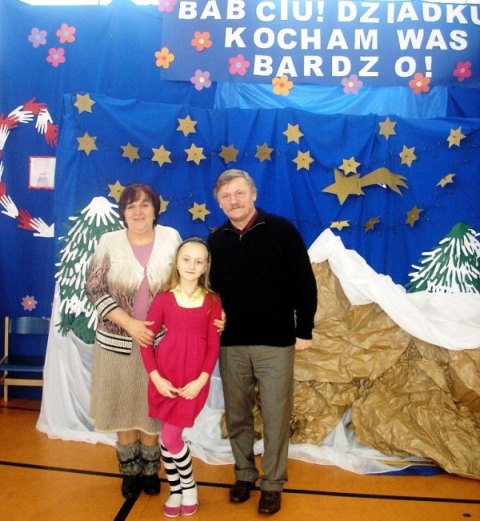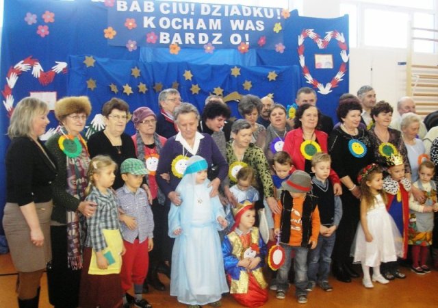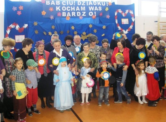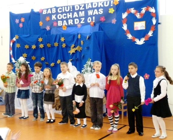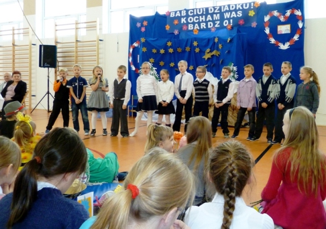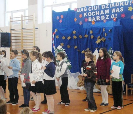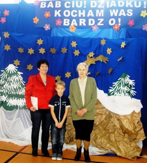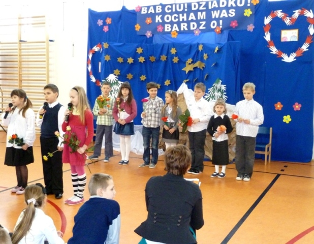 Babcia i Dziadek to dwie osoby miłe sercu każdego wnuka, dlatego też, co roku 21 i 22 stycznia nasze serca biją mocniej. A wszystko to z jednego powodu: Święta Babci i Dziadka. Nasi mili goście przybyli do nas 21 stycznia w Święto Babci. Na naszych kochanych Dziadków czekały nie tylko wnuczęta, ale też pięknie udekorowana sala gimnastyczna, w której odbyła się uroczystość i kolorowo nakryte stoły. Uroczystość rozpoczęła Pani Dyrektor Aleksandra Obszyńska, która bardzo serdecznie powitała naszych miłych gości. Po czym dzieci z klas 0-III z wielkim przejęciem prezentowały program artystyczny przygotowany specjalnie na tę okazję. Dzieci najmłodsze, czyli 5-6-latki pokazały przedstawienie jasełkowe, klasa I wyrecytowała życzenia i zaśpiewała piosenkę, klasa II zaprezentowała piękną recytację wierszy o Babci i Dziadku oraz zaśpiewała piosenkę, a klasa III zabawiała dziadków wesołymi żarcikami i również zaśpiewała piosenkę. Było poważnie, wzruszająco i bardzo wesoło. Przedstawienie przyjęto burzą braw. Dziadkowie byli dumni ze swych wnucząt. Prawdziwe wzruszenie ogarnęło wszystkich Dziadków, gdy wnuczęta obdarowały ich własnoręcznie wykonanymi laurkami i upominkami. Potem była wspólna zabawa, uściski i pamiątkowe zdjęcia z Dziadkami. W trakcie całej uroczystości Dziadkowie delektowali się wypiekami przygotowanymi przez mamy naszych uczniów. Serdecznie dziękujemy wszystkim Dziadkom, którzy przybyli na uroczystość z okazji Dnia Babci i Dziadka. Wychowawcom klas 0-III dziękujemy za przygotowanie dekoracji i części artystycznej uroczystości. Dziękujemy również wszystkim mamom, które jak zwykle aktywnie włączyły się w przygotowania uroczystości. Cała uroczystość została upamiętniona na zdjęciach. Zapraszamy wszystkich już za rok, a teraz proszę zajrzeć do naszej galerii zdjęć, aby jeszcze raz przeżyć ten miły, pełen niespodzianek dzień.