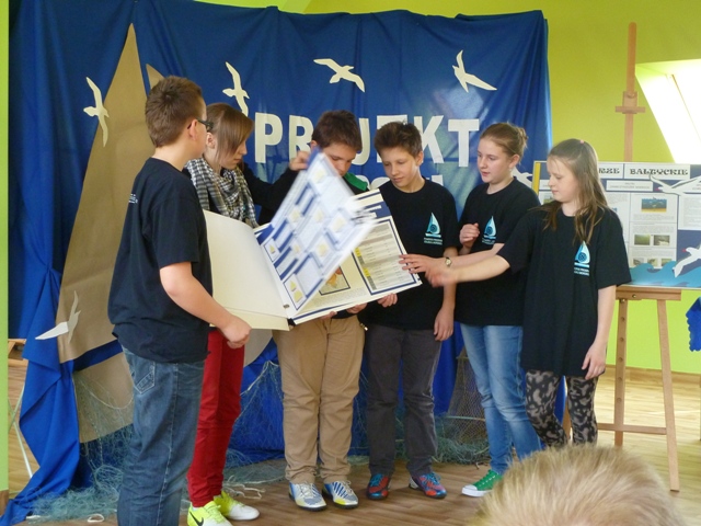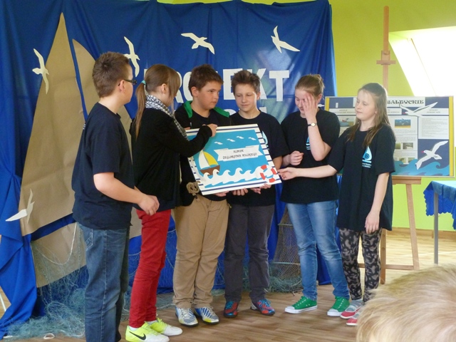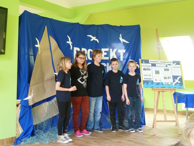 Dnia 12 kwietnia 2013r. o godz. 11:00 w świetlicy naszej szkoły odbyła się prezentacja Projektu morskiego klasy V realizowanego przez uczniów pod kierunkiem p. Jolanty Baran w ramach ogólnowojewódzkiej inicjatywy edukacyjnej "Złąp wiatr w pomorskie żagle wiedzy" - sponsorowanewj przez Urząd Marszałkowski w Gdańsku ze środków unijnych. Na prezentację przybyli pełniąca obowiązki dyrektora szkoły p. Żaneta Stawicka, uczniowie klas IV i VI naszej szkoły pod opieka wychowawców oraz rodzice członków klasy V.
