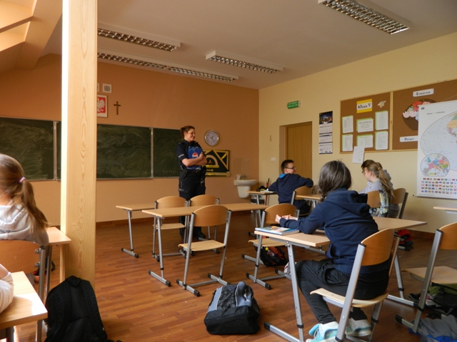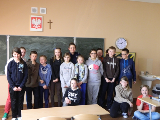 Dnia 22 kwietnia 2013r. w Szkole Podstawowej im. Janusza Korczaka w Żarnowcu, klasa piąta miała okazję gościć funkcjonariuszkę policji komisariatu w Krokowej. Pani poruszyła z uczniami ważny w dzisiejszych czasach temat bezpieczeństwa ucznia w sieci internetowej. Zostały omówione przypadki nadużyć w internecie i to, jak oni sami mogą zostać w nim oszukani. Klasę zainteresował temat popularnych ostatnio portali społecznościowych. Mieli mnóstwo pytań dotyczących tego właśnie tematu. Policjantka bardzo fachowo udzielała odpowiedzi na wszystkie pytania i rozwiała wszelkie wątpliwości uczniów. Całe spotkanie przebiegło w miłej atmosferze. Uczniowie dyskutowali z Policjantką i wykazali się wiedzą powszechną jak i znajomością obowiązujących w prawie karnym przepisów, dotyczących oprogramowania komputerowego, przestępstw internetowych oraz zachowania się w sieci. Spotkanie zakończone zostało zdjęciem grupowym.