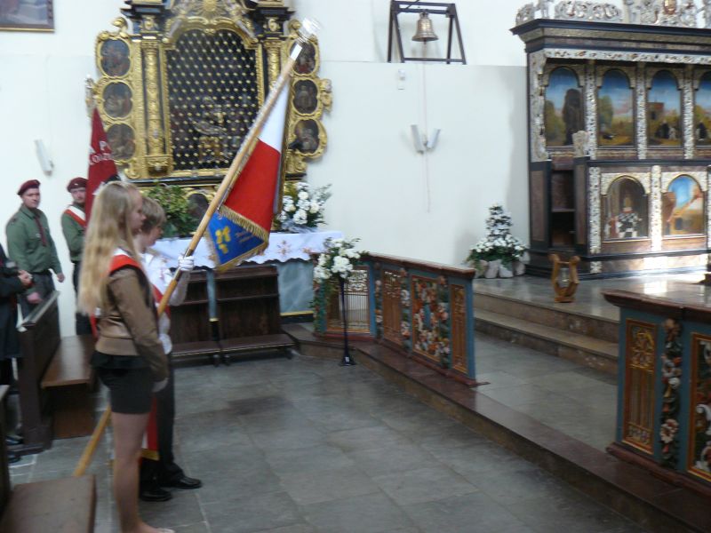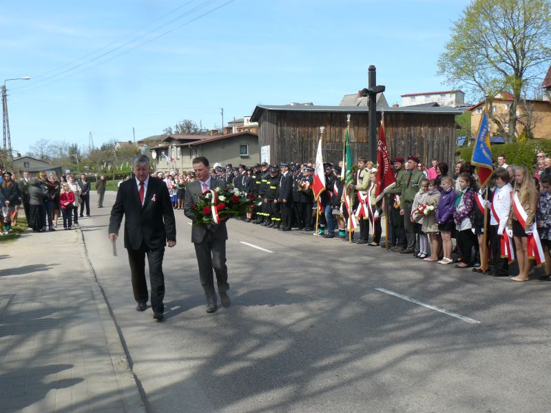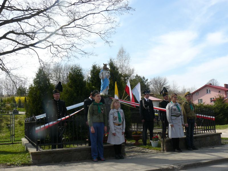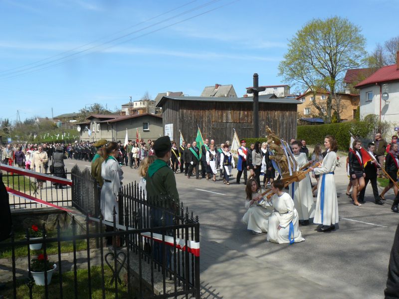 Dnia 3 maja 2013 r. obchodziliśmy 222 rocznicę uchwalenia Konstytucji 3 Maja. W kościele Parafialnym pod wezwaniem Zwiastowania Pana w Żarnowcu, z tej okazji oraz Święta Matki Bożej Królowej Polski, odbyła się msza św. W intencji Ojczyzny. Uczestniczyły w niej władze państwowe, powiatowe i samorządowe, a także delegacje kół, zrzeszeń i szkół z terenu gminy Krokowa. Po uroczystości w kościele nastąpił uroczysty przemarsz i odsłonięcie herbu Żarnowca na murze ogrodzenia nowo powstałej szkoły. Następnie uczestnicy z orkiestrą dętą z Wierzchucina na czele, udali się pod pomnik Matki Bożej Królowej Polski, gdzie po przemowach przedstawicieli władz, złożono kwiaty. Uczniowie i nauczyciele Szkoły Podstawowej im. Janusza Korczaka w Żarnowcu z zaangażowaniem uczestniczyli w uroczystości. Poczet sztandarowy w składzie Martyna Muttka, Jan Jettke, Karolina Lademann oraz Joanna i Katarzyna Borysiak, a także harcerze z 43 Drużyny „Sokoły”: Agata Pestilenz ,Anna Maze, Alicja Hempel, Oliwia Langer, Bartłomiej Styn, Artur Dominik, Piotr Bianga, Piotr Goyke wręczali zaproszonym gościom kotyliony i pełnili honorowe warty. Zuchy i nauczyciele złożyli kwiaty pod figurą Matki Bożej ufundowanej przez naszych przodków w podziękowaniu za wolność ojczyzny.