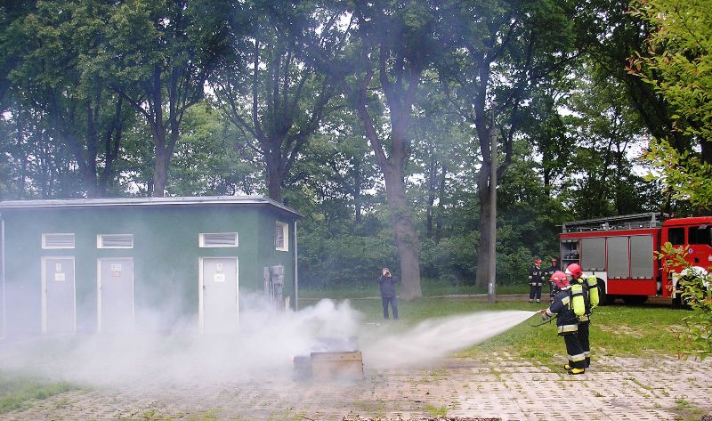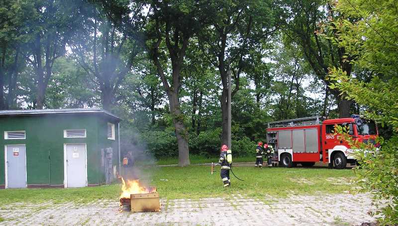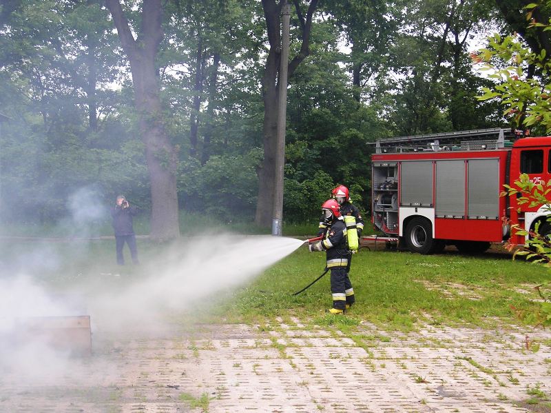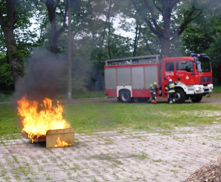 gaszenie prawdziwego pożaru przez Staż Pożarną, pracę Straży