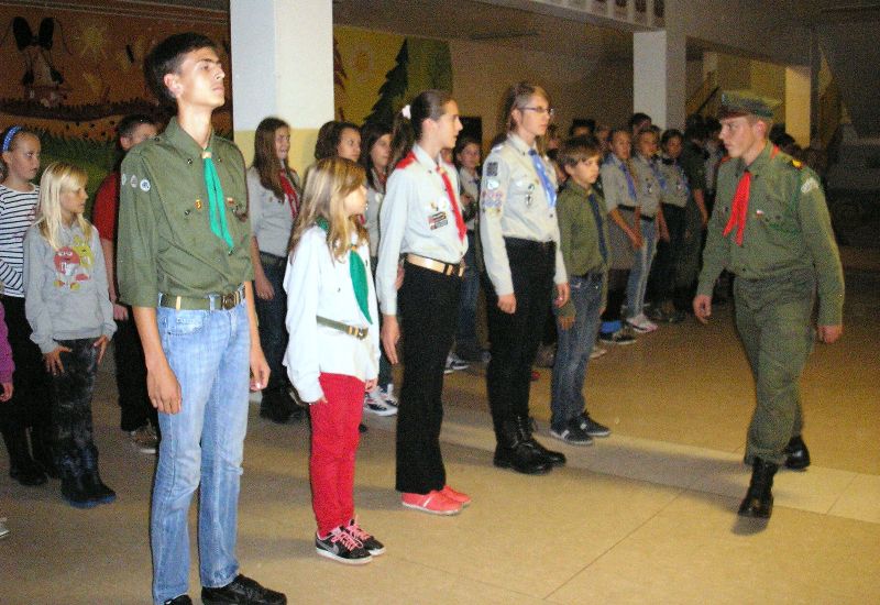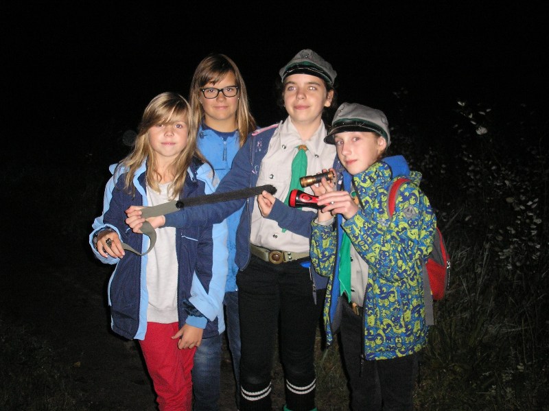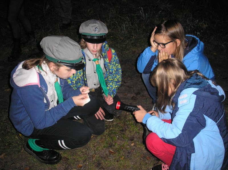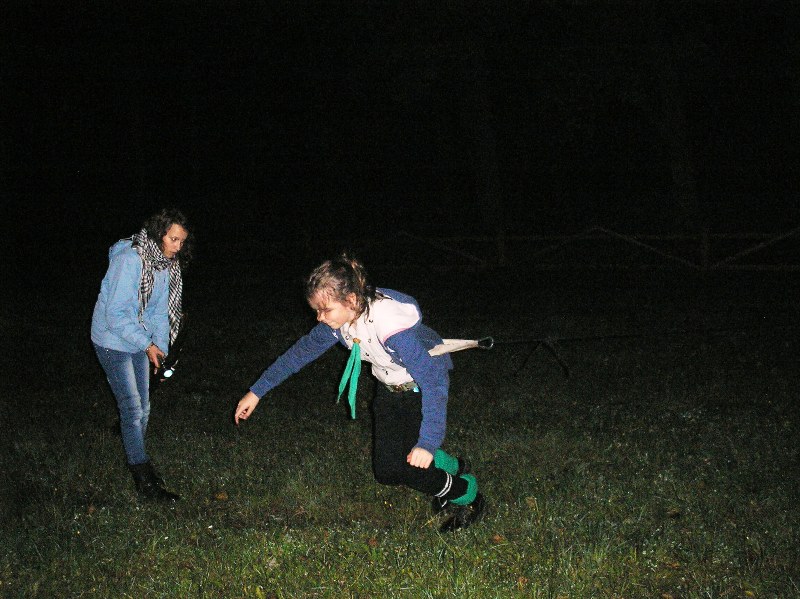 W piątkowy wieczór było ognisko i śpiew harcerskich piosenek. W nocy odbyła się nocna gra przez ciemny las. Po drodze czekało na nas wiele ciekawych zadań, często bardzo trudnych. Zadania wymagały od nas sprawności fizycznej i wielkiej odwagi. Daliśmy sobie świetnie radę, a przejście kilkunastu kilometrów przez ciemny nas dodało nam wiary w siebie.