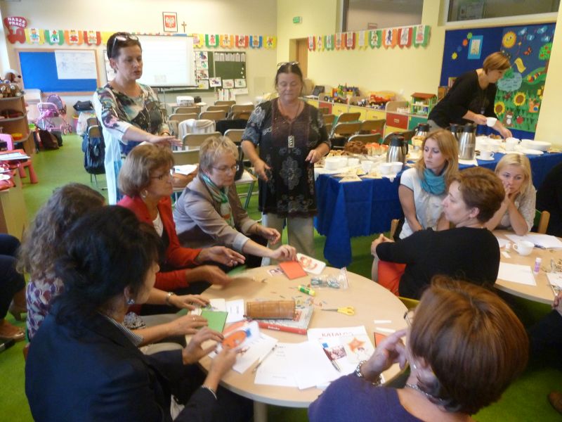 Dnia 18.09.2013r. odbyły się warsztaty pt. „ Czy dziecko jest gotowe do szkoły? ”. Inicjatorkami spotkania były nauczycielki wychowania przedszkolnego - p. Danuta Laskowska i p. Marzena Muttka. We współpracy z dyrektorem szkoły i przedstawicielem Wydawnictwa Didasko panią Lidią Kamińską, nauczyciele przedszkoli i nauczania zintegrowanego ze Szkół Podstawowych Gminy Krokowa mieli okazję spotkać się z konsultantkami Warmińsko – Mazurskiego Ośrodka Doskonalenia Nauczycieli z p. Małgorzatą Gułą i Marleną Szwemińską . Warsztaty składały się z części teoretycznej i praktycznej. Konsultantki podsunęły nauczycielom obecnym na warsztatach wiele pomysłów, które można wykorzystać w pracy wychowawczo – dydaktycznej. Spotkanie w miłej atmosferze, przy kawie i ciastku było okazją do podzielenia się opiniami i wymianą ciekawych spostrzeżeń.