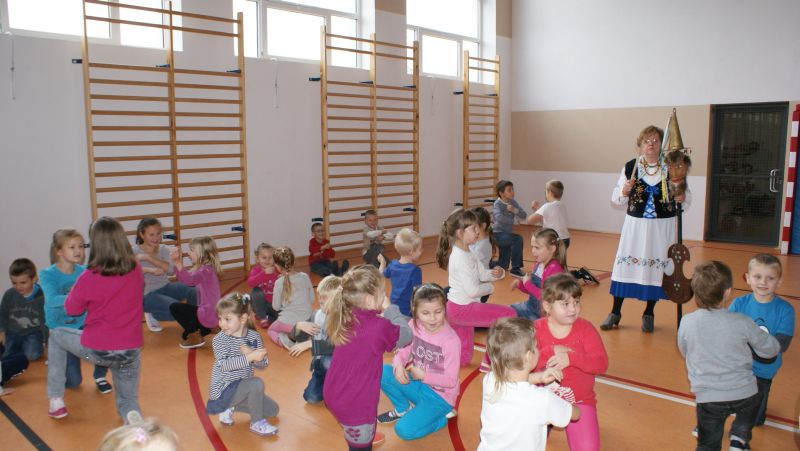 Dzieci również poznały instrumenty muzyczne, na których mogły pograć oraz kilka tańców ludowych. Wspólnie zaśpiewały kilka kaszubskich piosenek oraz zatańczyły. Zabawy i tańce przy kaszubskiej muzyce sprawiły im dużą przyjemność.