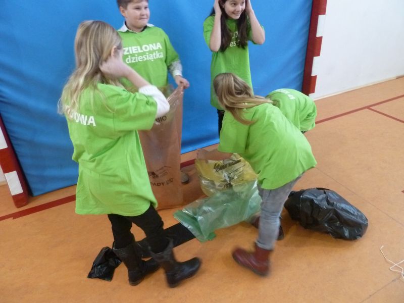 W dniu 09 grudnia 2013r. w Szkole Podstawowej im. Janusza Korczaka w Żarnowcu gościliśmy ekologiczne drużyny szkół podstawowych z Krokowej, Sławoszyna i Wierzchucina, które razem z naszą drużyną rywalizowały w gminnym konkursie pod hasłem: „ Nasze rady na odpady”. Uczestnicy zmagali się w dwóch rundach pytań ustnych, zadaniach pisemnych, grze zręcznościowej oraz wykazali się praktycznymi umiejętnościami w segregowaniu odpadów. Dodatkowe dwa zadania polegały na prezentacji strojów ekologicznych i przygotowaniu pracy technicznej z wykorzystaniem różnorodnych materiałów odpadowych, tzw.: „Śmieciozaura”.Nad prawidłowym przebiegiem imprezy i oceną zawodników czuwała komisja w składzie: Pani Iwona Tylicka- kierownik referatu gospodarki odpadami i ochrony środowiska w Urzędzie Gminy Krokowa, Pani Natalia Abraham - pracownik tegoż referatu oraz Pani Maja Jaromirska- Lewińska- Dyrektor Krokowskiego Centrum Kultury. Całej imprezie dopingowała publiczność , składająca się z uczniów klas 4-6 Szkoły Podstawowej im. Janusza Korczaka w Żarnowcu wraz z nauczycielami. Wszyscy byli pod wielkim wrażeniem kreatywności i wiedzy uczestników X Festiwalu Ekologicznego. Przed ogłoszeniem werdyktu zostały przedstawione wyniki szkolnych konkursów na najciekawszy strój ekologiczny i „ Śmieciozaura”, które następnie reprezentowały naszą szkołę podczas konkursu gminnego. Zwycięzcami zostali: