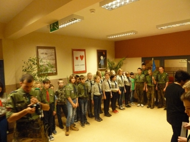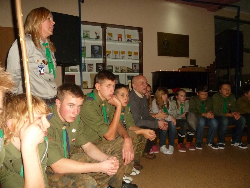 Pierwszym punktem programu był wspólny kominek, który rozpoczął zaproszony gość, przyjaciel szkoły, ksiądz proboszcz Krzysztof Stachowski, który opowiedział harcerzom piękną gawędę, której morałem było dobro ukryte w naszych sercach, piękno człowieka, które można zobaczyć poprzez jego dobre uczynki, uczciwe życie.