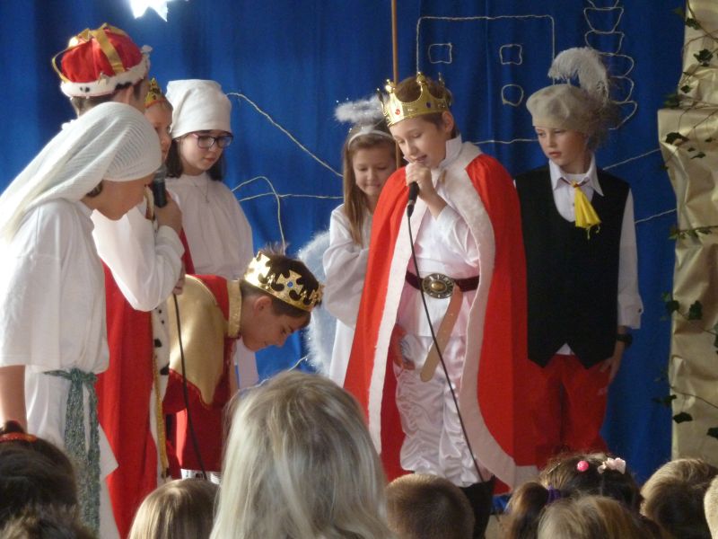 Do inscenizacji zaangażowano wszystkich uczniów klasy trzeciej.
