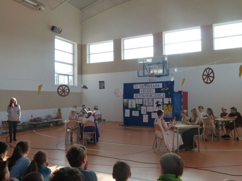 Olimpiada rozpoczęła dyrektor szkoły: mgr Aleksandra Obszyńska, która życzyła wszystkim jej uczestnikom powodzenia, a p. H. Gojke podziękowała za wieloletnie propagowanie wiedzy mitologicznej.