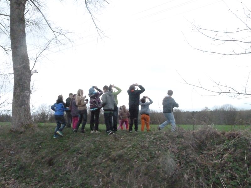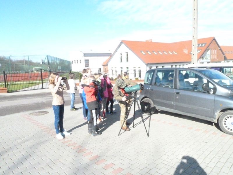 Druga cześć zajęć odbyła się w terenie. Ornitolog zapoznał uczniów z obsługą lornetek, po czym nastąpiło wypatrywanie gatunków, które występują na terenie Nadmorskiego Parku Krajobrazowego.