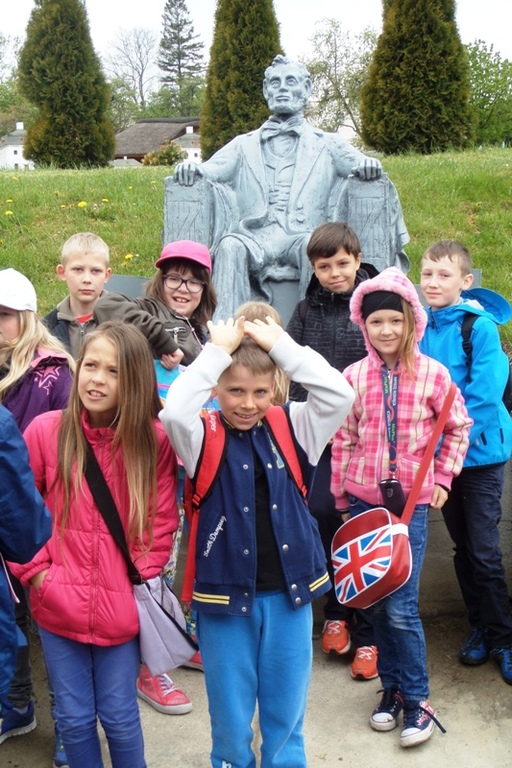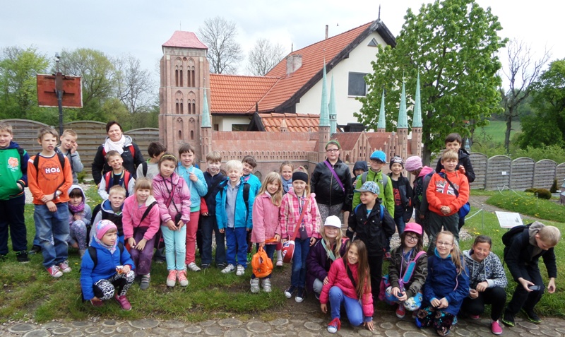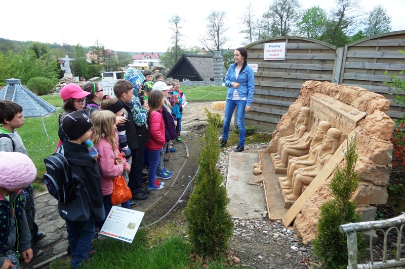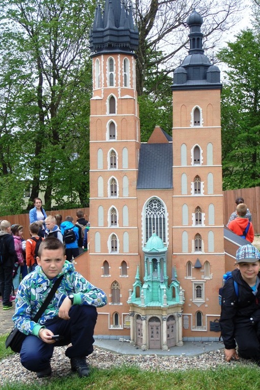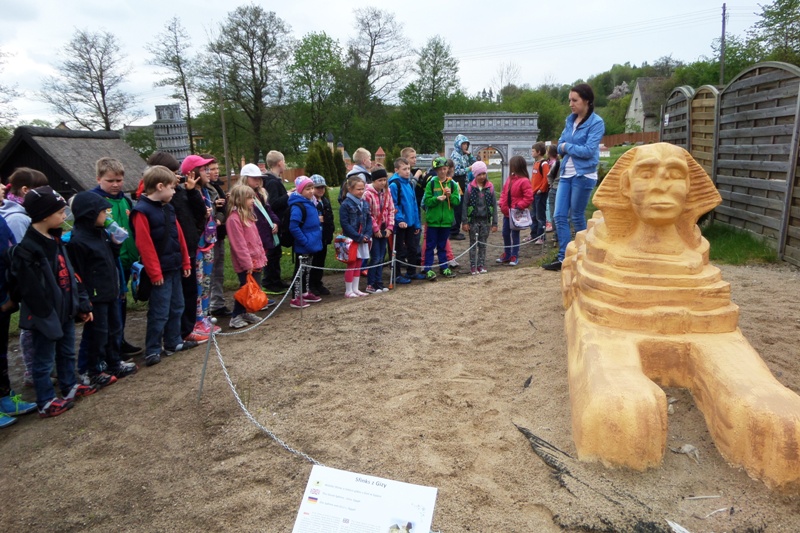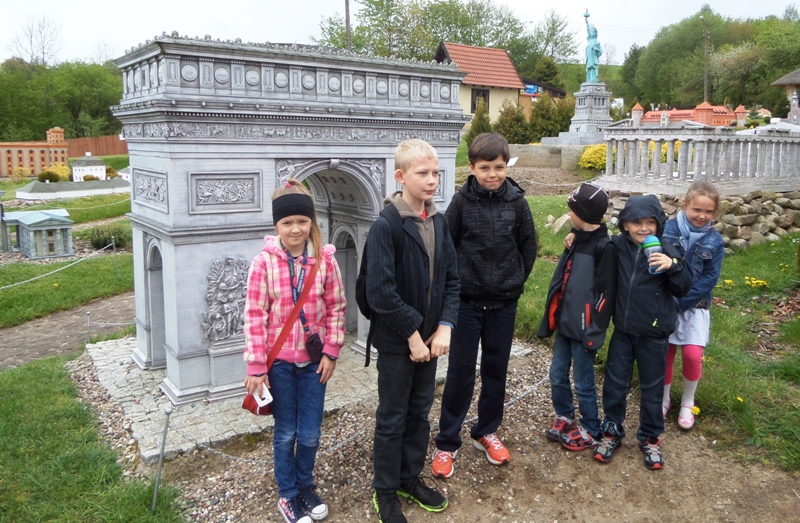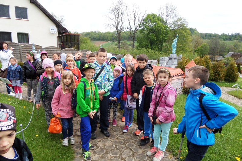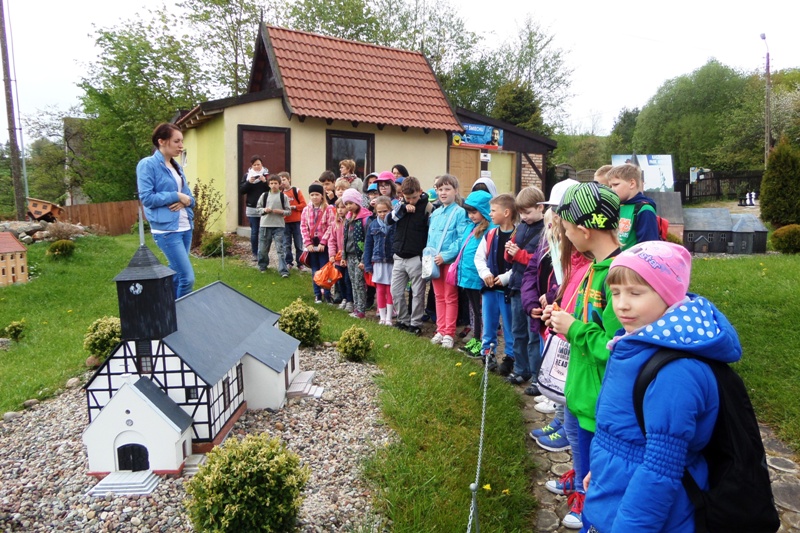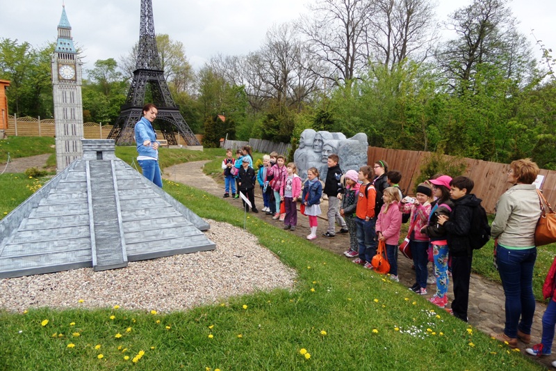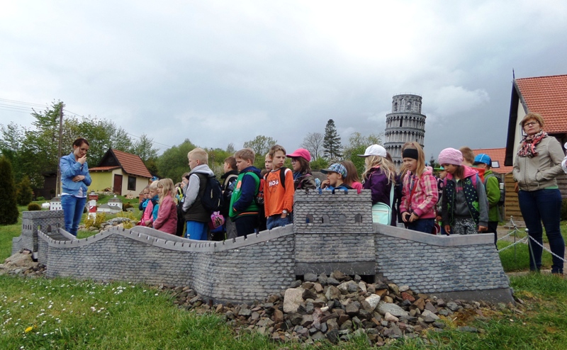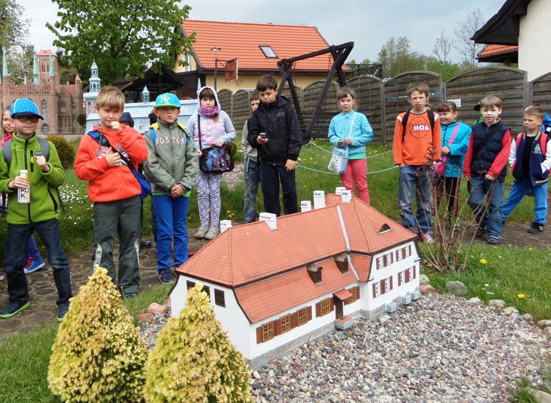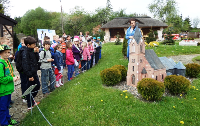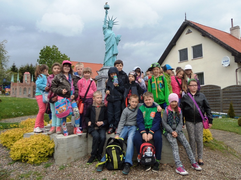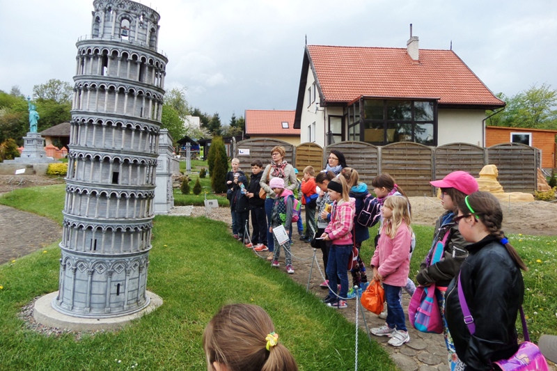 Dnia 8 maja 2014r. dzieci z klas I-III pojechały na wycieczkę do PARKU MINIATUR W SZTRYSZEJ BUDZIE w ramach języka kaszubskiego. Każdy z nas pewnie marzy o dalekiej podróży na przykład do Paryża, Nowego Yorku lub Szymbarku na Kaszubach… W Stryszej Budzie odbyliśmy szybką podróż dookoła świata. Jest to miejsce na wskroś magiczne, takie które urzekło Nas swoim urokiem, które warto zwiedzić. Co prawda pełno w nim jarmarcznych straszaków, figurek i zabawek, ale dzieci nie zwracały na to uwagi, skupiły swą uwagę na misternie wykonane miniatury budowli pochodzących z całego świata. W jednym miejscu, w jednej skali 1:25, można było zobaczyć wierne kopie najbardziej charakterystycznych obiektów Kaszub: kościoły, zamki i dwory. Swoje miejsce znalazły m.in: Zamek w Bytowie, Kaplice Kalwarii Wejherowskiej, Latarnie Morskie w Helu, Jastarni, Rozewiu, Kolegiata Kartuska, Dworek Wybickiego z Będomina, z Salina, Kościoły z Sierakowic, Sianowa, Wygody, wiatrak typu Holender, są osady wiejskie i kilkanaście innych makiet. Imponująca jest makieta Kościoła Mariackiego z Gdańska - największej świątyni z cegły na świecie. Kaszuby to motyw przewodni - jednak w parku są również atrakcje z Polski i ze świata. Statua Wolności, Sfinks, Chrystusa z Rio, Mur Chiński czy Krzywa Wieża w Pizie, to tylko niektóre obiekty które znajdują się w parku w Stryszej Budzie. Oprócz tego jest tam Bajkowa Kraina, czyli zbiór postaci ze znanych bajek i baśni: Królewna Śnieżka i 7 krasnoludków, Jaś i Małgosia, Królowa Śniegu, Trzy Świnki, Kaczor Donald, Myszka Miki. Są też aktualne Gwiazdy najmłodszych - Spiderman, bohaterowie Epoki Lodowcowej, Shreka i innych. Łącznie ponad 60 figur. Na terenie parku funkcjonuje punkt gastronomiczny, gdzie można było kupić sobie coś pysznego do jedzenia. Dodatkowo dla najmłodszych do dyspozycji była - trampolina, zjeżdzalania dmuchana, plac zabaw i minii zoo. Zabawa w parku w Stryszej Budzie była przednia. Polecamy wszystkim, którzy chcą zobaczyć ciekawe budowle świata i dodatkowo pobawić się na pięknie przygotowanym placu zabaw.
