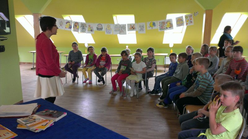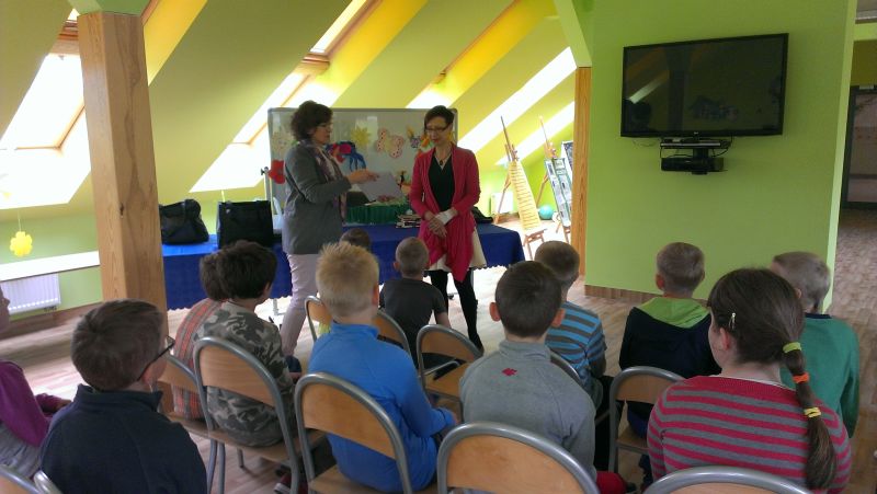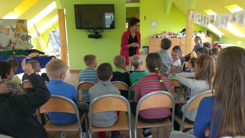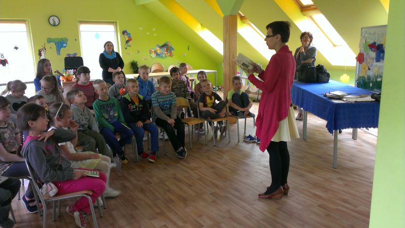 14 maja 2014r. w naszej szkolnej świetlicy odbyło się spotkanie uczniów klasy I i II z autorką wielu popularnych i chętnie czytanych przez dzieci książek - Małgorzatą Strękowską-Zarembą. Organizatorem spotkania była Gminna Biblioteka Publiczna w Krokowej. W szkolnych progach powitały gościa Panie Maria Bromboszcz i Żaneta Stawicka.