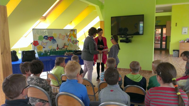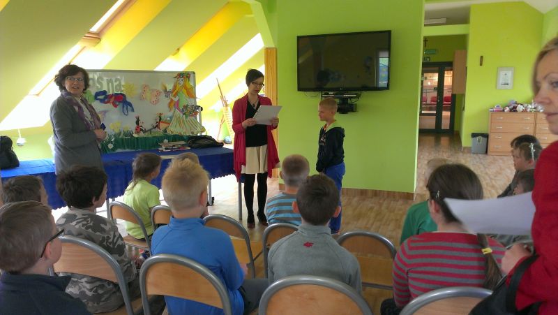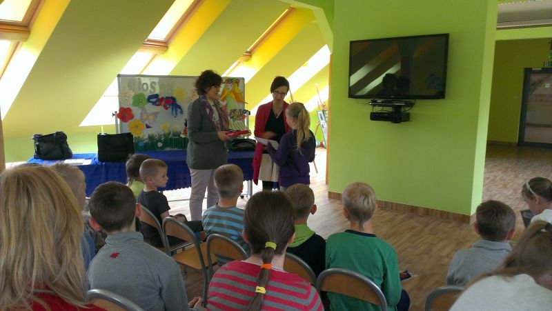Następnie odbyło się rozdanie nagród w konkursie plastycznym pt. „Litery” (organizator Gminna Biblioteka Publiczna w Krokowej). Zdobywczynią I miejsca została Małgorzata Jetke, II miejsce zajął Maksymilian Białk, a III - Julia Dominik, uczniowie klasy II. Wyróżnienia zdobyli: Zuzanna Krefta i Kinga Okuń z klasy I oraz Jakub Bogusławski z klasy II.