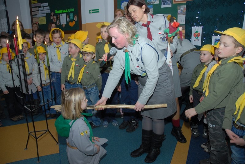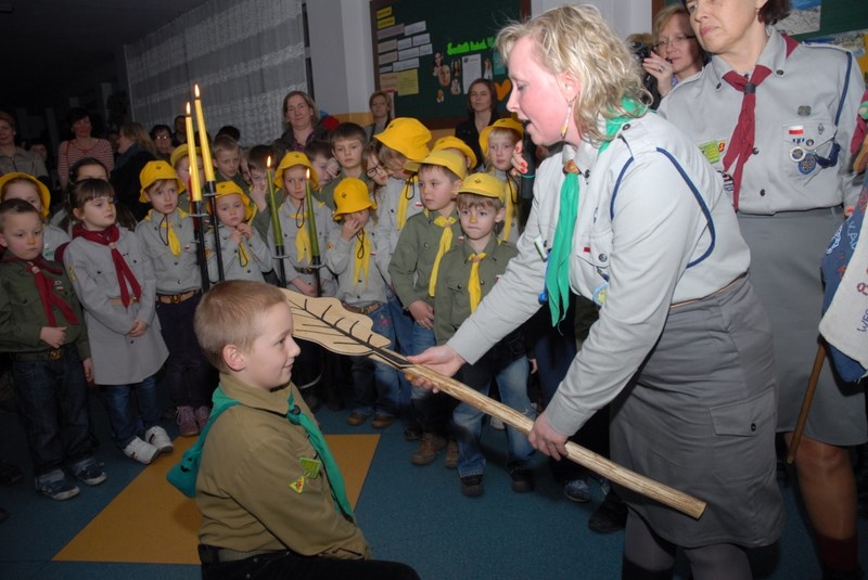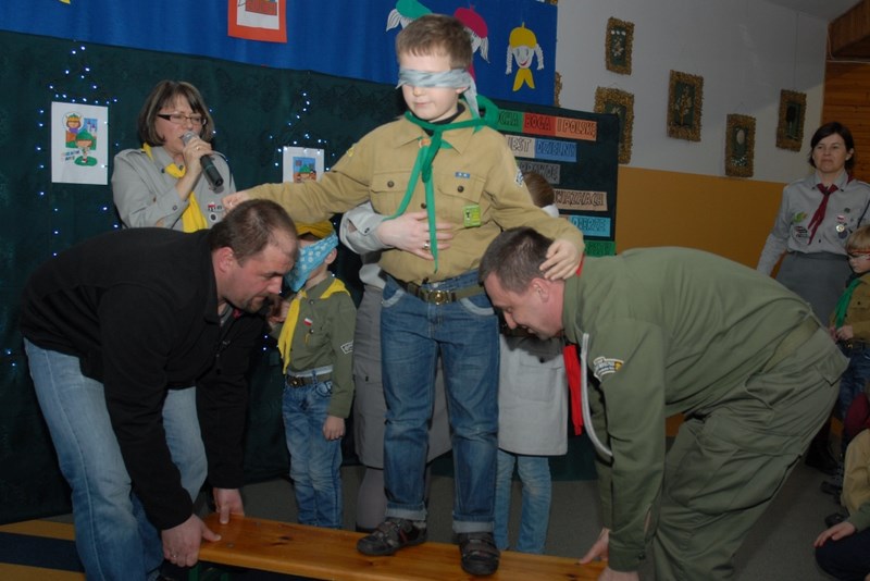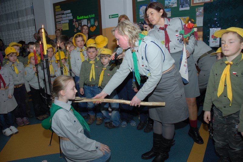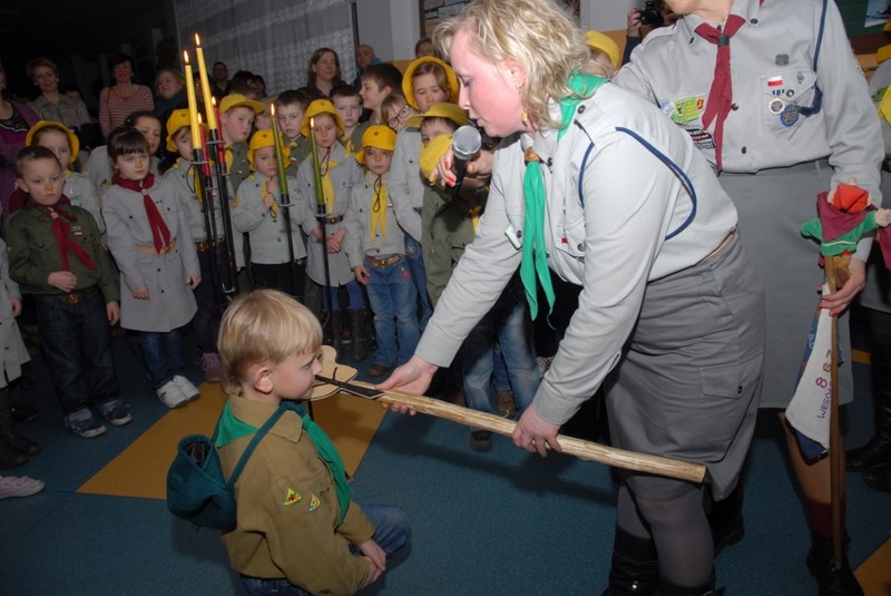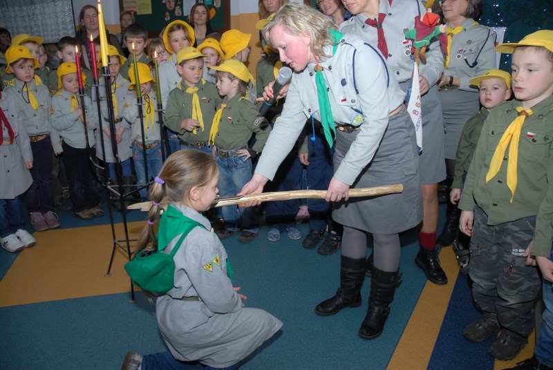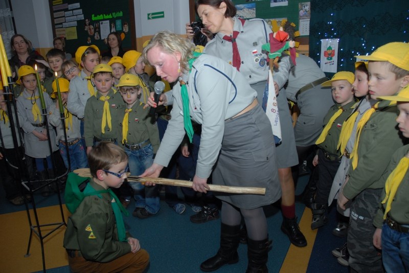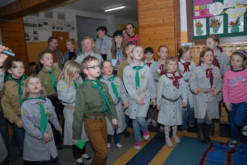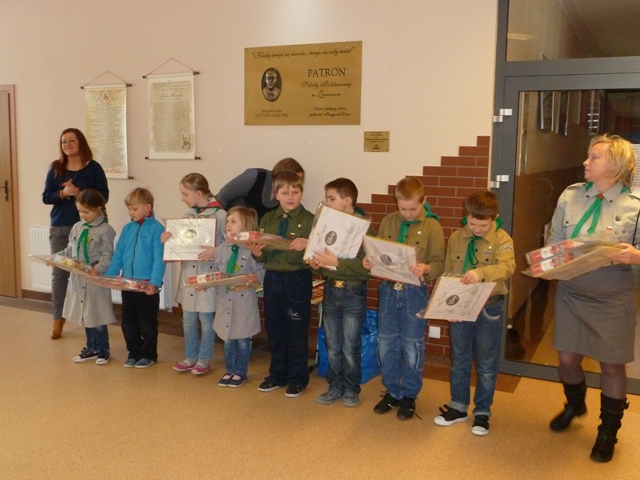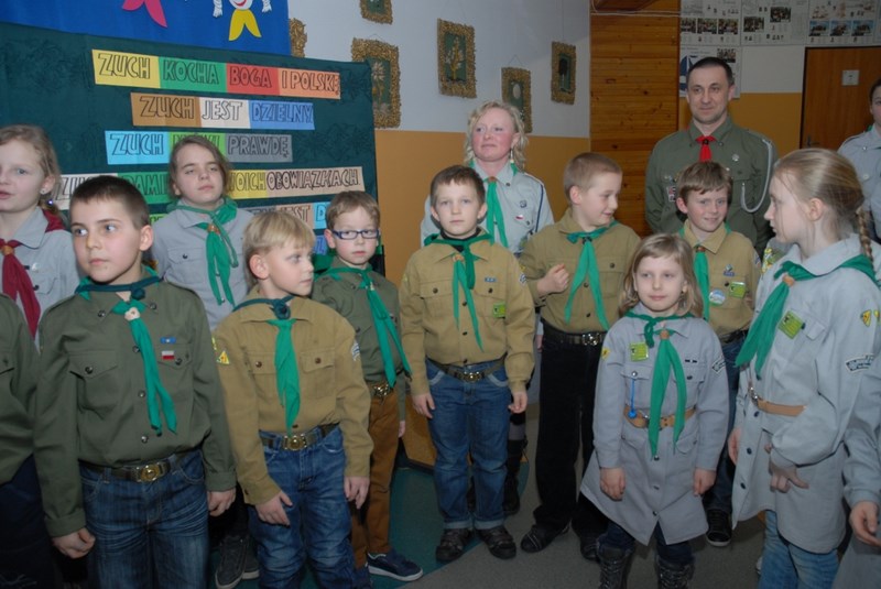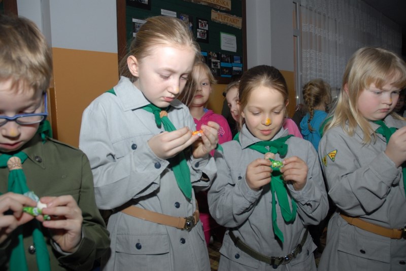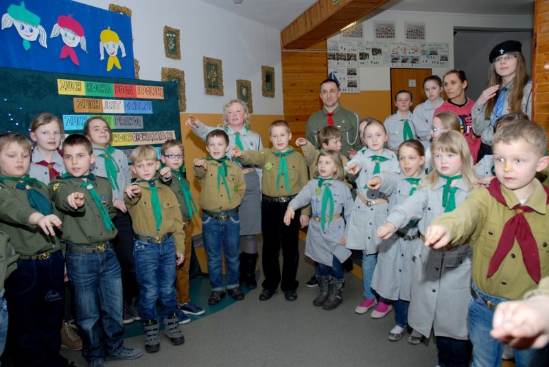 W dniu 08.03.2013r. o godz. 17:00 Zuchy z 7 Gromady Zuchowej „Leśne Skrzaty” ze Szkoły Podstawowej im. Janusza Korczaka w Żarnowcu wraz z zuchami z innych gromad złożyły uroczystą „Obietnicę Zuchową”. W tym wyjątkowym wydarzeniu uczestniczyli: Komendant Hufca Puck druh Tadeusz Huk, drużynowi, dyrektorzy szkół, rodzice, zuchy i harcerze. Przed złożeniem obietnicy „zuchy – żółtodzioby” musiały przejść próbę odwagi i „wyparzanie języka”. Po zaliczonych próbach uroczyście ślubowali „Być dobrymi zuchami , zawsze przestrzegać prawa zucha”. Następnie drużynowi pasowali ich na zuchów , wręczyli znaczki , legitymacje i poradniki zucha. Po zakończeniu części oficjalnej, rozpoczął się biwak zuchowy z udziałem harcerzy, którzy przygotowali dla młodszych kolegów zadania na biegu patrolowym. Dziękuję harcerkom z 43 Drużyny „Sokoły” Martynie Muttka i Joannie Borysiak za pomoc i dobrą zabawę.