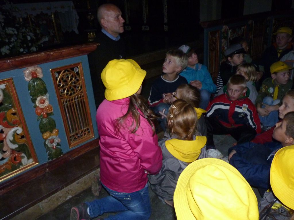 Kolejną atrakcją był grill na plebanii. Kiedy zuchy posiliły się ksiądz oprowadził nas po tajemniczych miejscach w Kościele Żarnowieckim i opowiedział o dawnych dziejach ludzi żyjących na tych ziemiach.