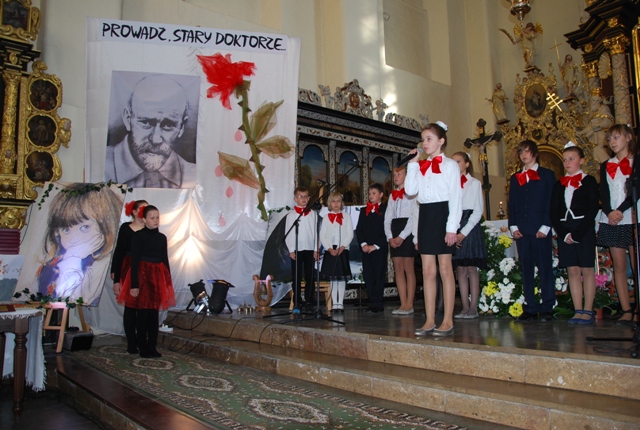 Występ uczniów Szkoły Podstawowej im. Janusza Korczaka w Żarnowcu podczas uroczystej Eucharystii. Tytuł przedstawienia: „Prowadź, Stary Doktorze”.
