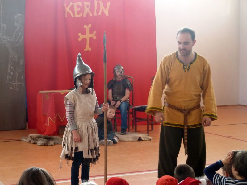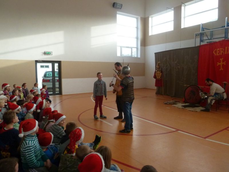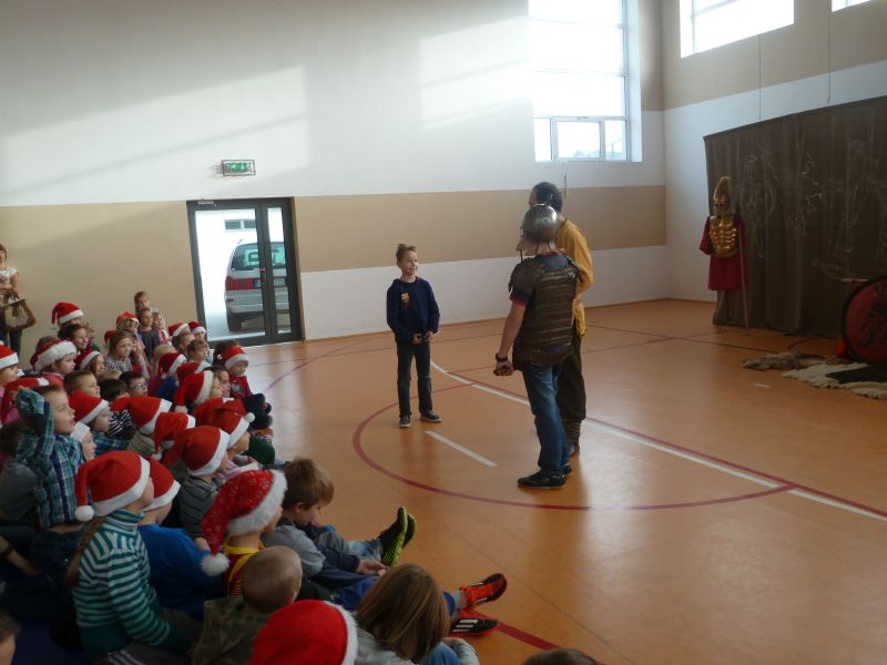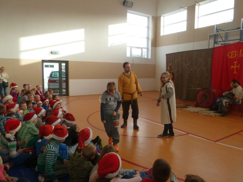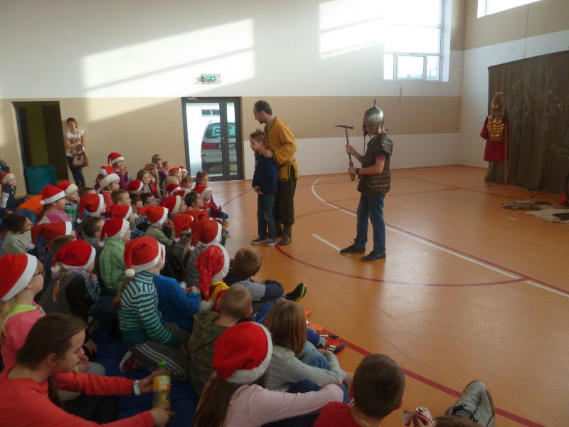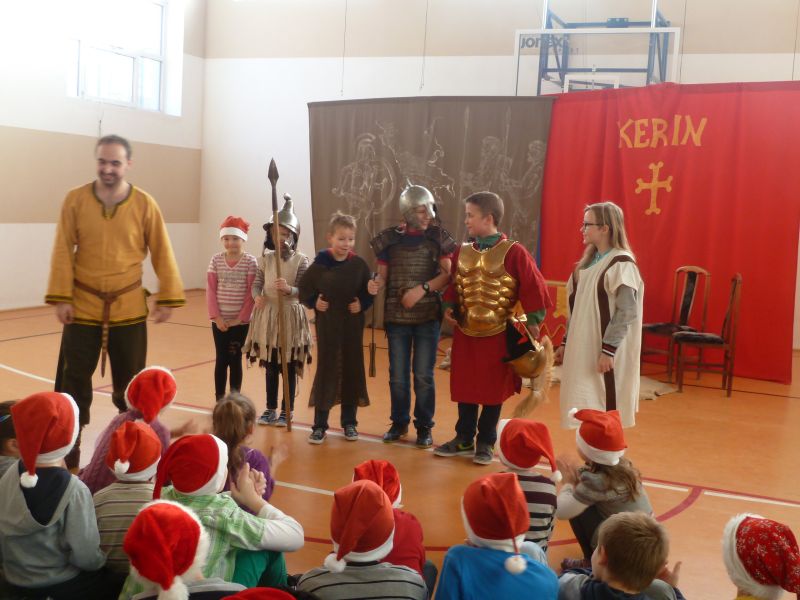 W dniu 5 grudnia 2014 r. naszą szkołę odwiedziło Bractwo Rycerskie „KERIN” z Gniewa. W obrazowy sposób przedstawili oni dzieje wojen starożytnej Grecji z Persją. W tej żywej lekcji historii wzięli udział chętni uczniowie z klas 0-VI. Bilet wstępu na przedstawienie kosztował 5 zł. Wybrani uczniowie prezentowali stroje ówczesnych żołnierzy.