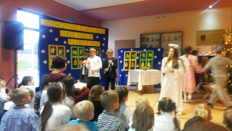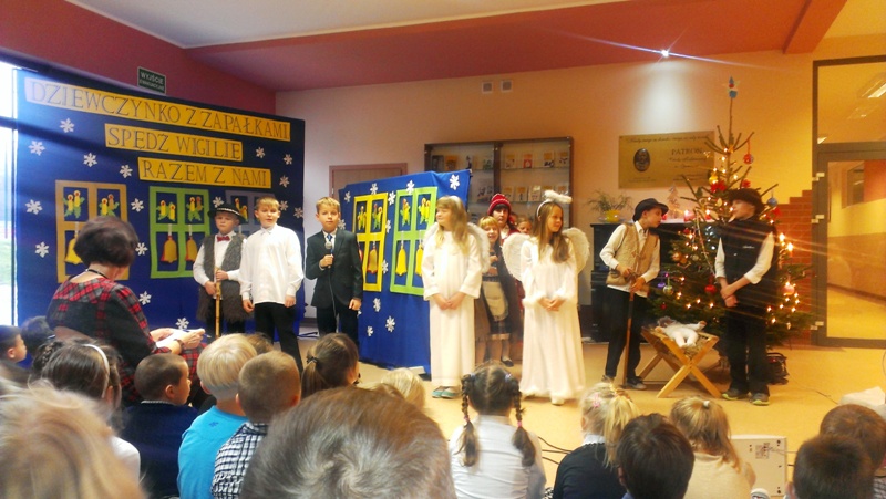 Dnia 19 grudnia 2014r. uczniowie klasy III pod kierunkiem p. Elżbiety Trelli i p. Marii Borskiej zaprezentowali społeczności naszej szkoły przedstawienie wigilijne pt.,, DZIEWCZYNKO Z ZAPAŁKAMI SPĘDŹ WIGILIĘ RAZEM Z NAMI".