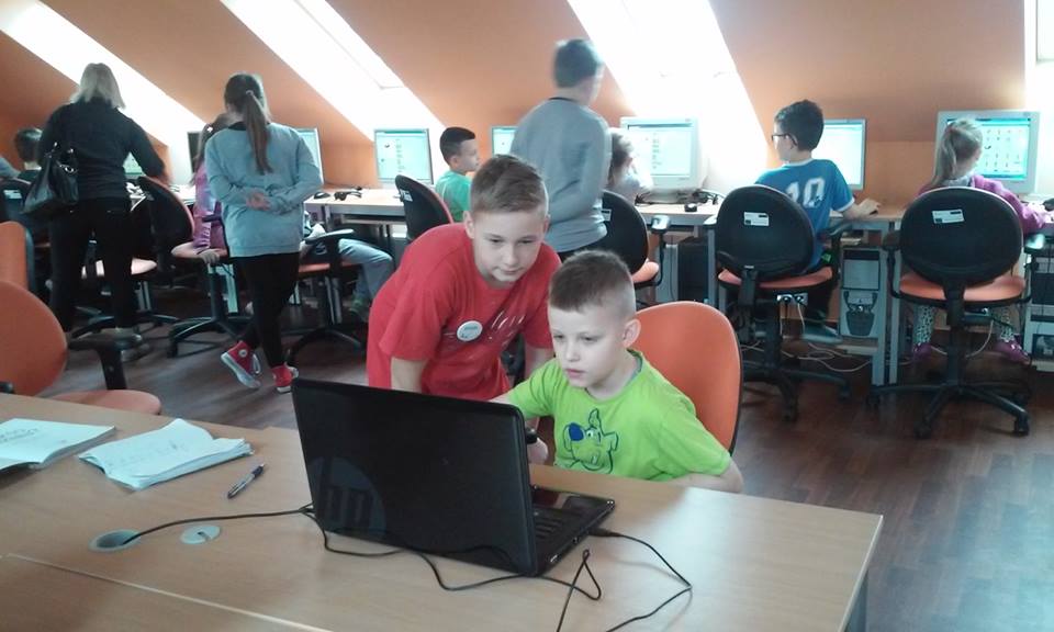 Kolejna lekcja z cyklu "Uczymy innych". Tym razem w roli nauczycieli wcielili się uczniowie klasy 4. Lekcje prowadziły dwie uczestniczki programu Mistrzowie Kodowania- Julia Skoczke i Sandra Grabska. Każde dziecko miało przy sobie ucznia klasy 4, który im pomagał kodować. Zapraszam do galerii!