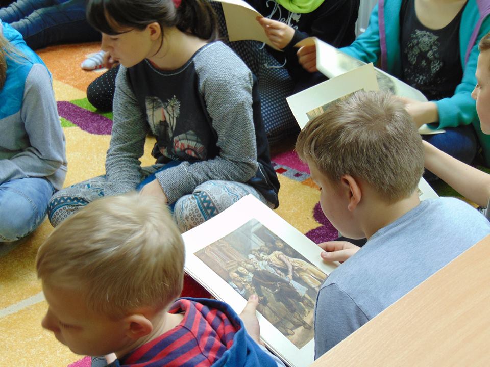 W trakcie czytania uczniowie mogli obejrzeć cenne "Ilustracje do Pana Tadeusza", których autorem jest Andriolli.