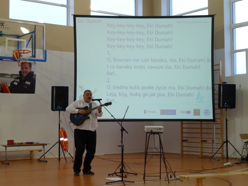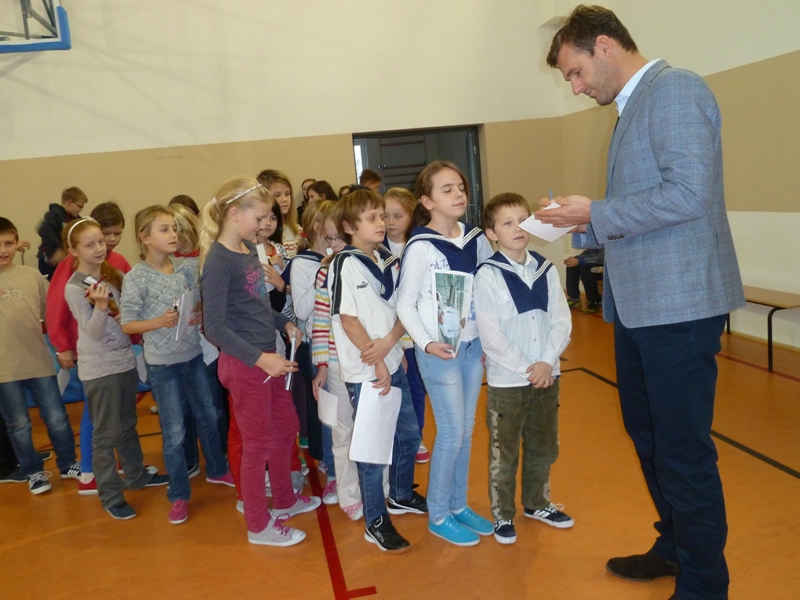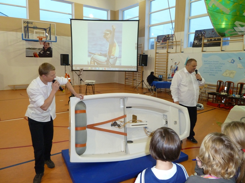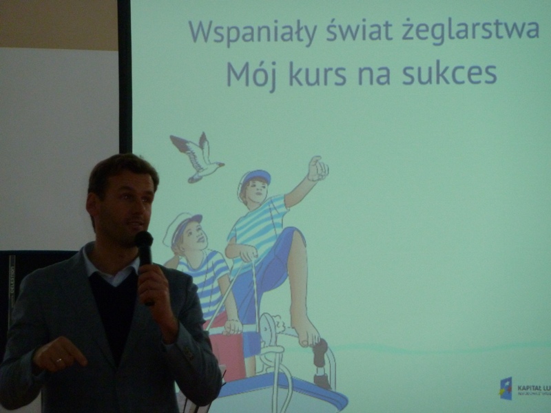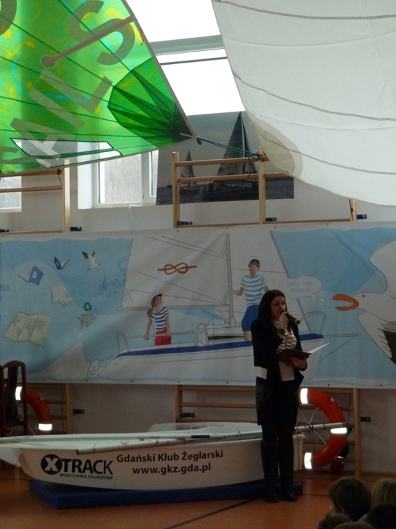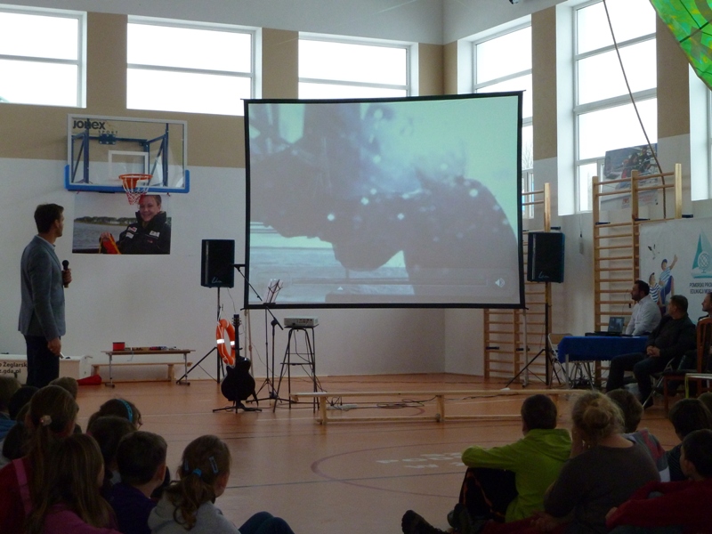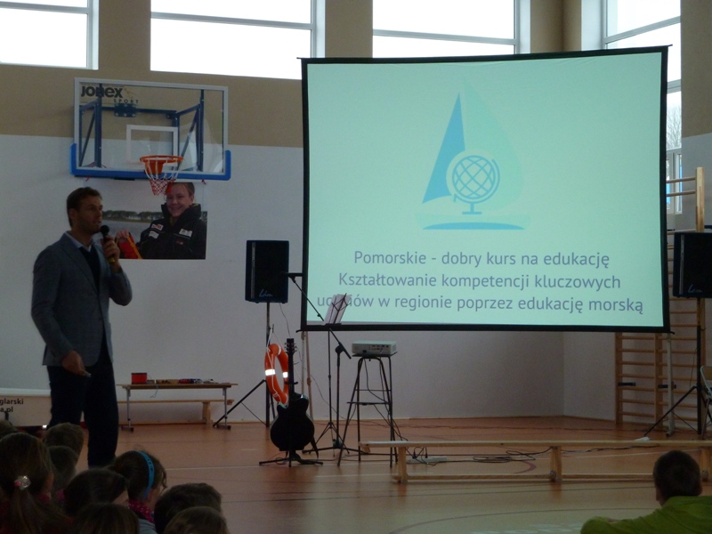 Zajęcia krótkim wstępem informacyjnym rozpoczęła pani dyrektor Szkoły Podstawowej im. Janusza Korczaka w Żarnowcu mgr Aleksandra Obszyńska i gorąco powitała zebranych. Głos zabrał również Wójt gminy pan Henryk Doering oraz gość honorowy pan Mateusz Kusznierewicz, który przybliżył uczniom dzieje swej kariery żeglarskiej.