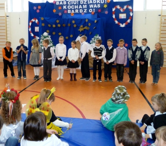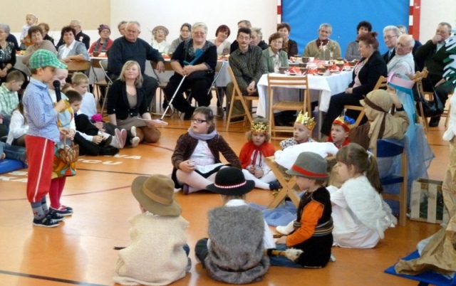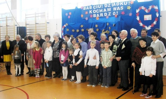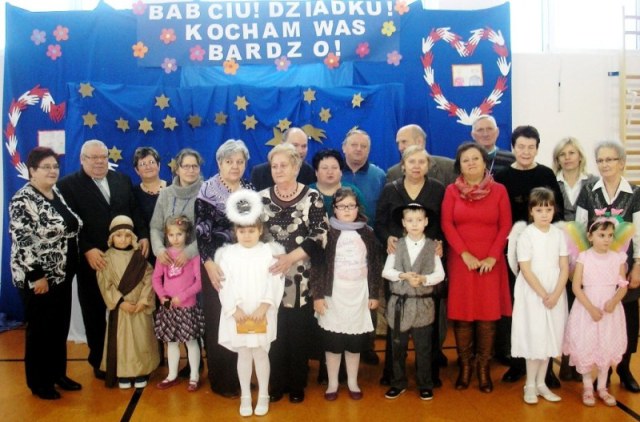 Babcia i Dziadek to dwie osoby miłe sercu każdego wnuka, dlatego też, co roku 21 i 22 stycznia nasze serca biją mocniej. A wszystko to z jednego powodu: Święta Babci i Dziadka. Nasi mili goście przybyli do nas 21 stycznia w Święto Babci. Na naszych kochanych Dziadków czekały nie tylko wnuczęta, ale też pięknie udekorowana sala gimnastyczna, w której odbyła się uroczystość i kolorowo nakryte stoły. Uroczystość rozpoczęła Pani Dyrektor Aleksandra Obszyńska, która bardzo serdecznie powitała naszych miłych gości. Po czym dzieci z klas 0-III z wielkim przejęciem prezentowały program artystyczny przygotowany specjalnie na tę okazję. Dzieci najmłodsze, czyli 5-6-latki pokazały przedstawienie jasełkowe, klasa I wyrecytowała życzenia i zaśpiewała piosenkę, klasa II zaprezentowała piękną recytację wierszy o Babci i Dziadku oraz zaśpiewała piosenkę, a klasa III zabawiała dziadków wesołymi żarcikami i również zaśpiewała piosenkę. Było poważnie, wzruszająco i bardzo wesoło. Przedstawienie przyjęto burzą braw. Dziadkowie byli dumni ze swych wnucząt. Prawdziwe wzruszenie ogarnęło wszystkich Dziadków, gdy wnuczęta obdarowały ich własnoręcznie wykonanymi laurkami i upominkami. Potem była wspólna zabawa, uściski i pamiątkowe zdjęcia z Dziadkami. W trakcie całej uroczystości Dziadkowie delektowali się wypiekami przygotowanymi przez mamy naszych uczniów. Serdecznie dziękujemy wszystkim Dziadkom, którzy przybyli na uroczystość z okazji Dnia Babci i Dziadka. Wychowawcom klas 0-III dziękujemy za przygotowanie dekoracji i części artystycznej uroczystości. Dziękujemy również wszystkim mamom, które jak zwykle aktywnie włączyły się w przygotowania uroczystości. Cała uroczystość została upamiętniona na zdjęciach. Zapraszamy wszystkich już za rok, a teraz proszę zajrzeć do naszej galerii zdjęć, aby jeszcze raz przeżyć ten miły, pełen niespodzianek dzień.