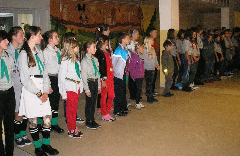 W piątkowy wieczór było ognisko i śpiew harcerskich piosenek. W nocy odbyła się nocna gra przez ciemny las. Po drodze czekało na nas wiele ciekawych zadań, często bardzo trudnych. Zadania wymagały od nas sprawności fizycznej i wielkiej odwagi. Daliśmy sobie świetnie radę, a przejście kilkunastu kilometrów przez ciemny nas dodało nam wiary w siebie.