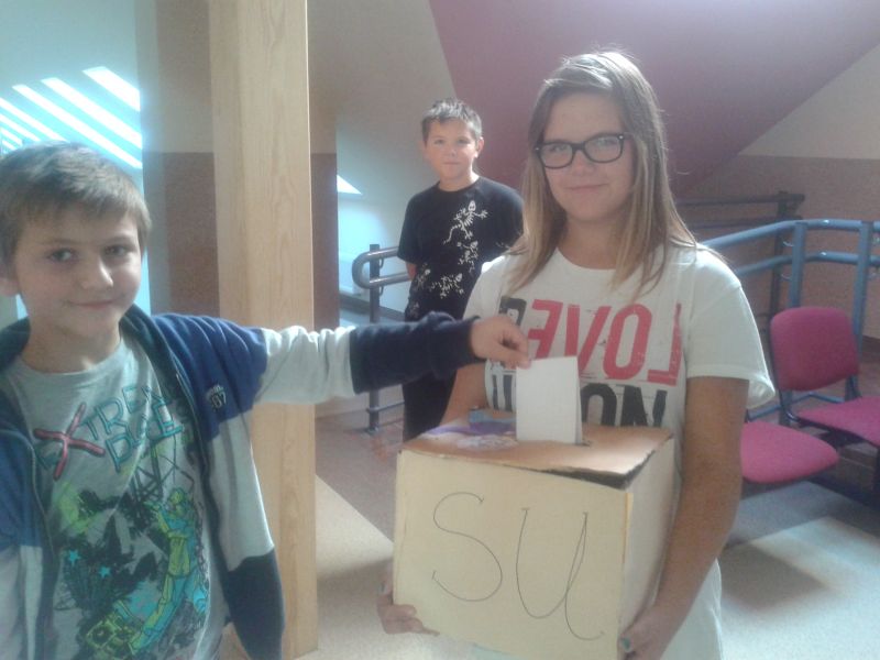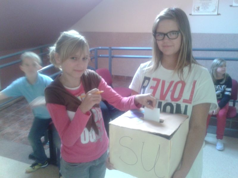 Dnia 04.10.2013 r. uczniowie oraz nauczyciele klas IV - VI głosowali na kandydatów do Samorządu Uczniowskiego Szkoły. Najwięcej głosów zdobyli: