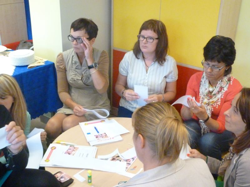 Dnia 18.09.2013r. odbyły się warsztaty pt. „ Czy dziecko jest gotowe do szkoły? ”. Inicjatorkami spotkania były nauczycielki wychowania przedszkolnego - p. Danuta Laskowska i p. Marzena Muttka. We współpracy z dyrektorem szkoły i przedstawicielem Wydawnictwa Didasko panią Lidią Kamińską, nauczyciele przedszkoli i nauczania zintegrowanego ze Szkół Podstawowych Gminy Krokowa mieli okazję spotkać się z konsultantkami Warmińsko – Mazurskiego Ośrodka Doskonalenia Nauczycieli z p. Małgorzatą Gułą i Marleną Szwemińską . Warsztaty składały się z części teoretycznej i praktycznej. Konsultantki podsunęły nauczycielom obecnym na warsztatach wiele pomysłów, które można wykorzystać w pracy wychowawczo – dydaktycznej. Spotkanie w miłej atmosferze, przy kawie i ciastku było okazją do podzielenia się opiniami i wymianą ciekawych spostrzeżeń.