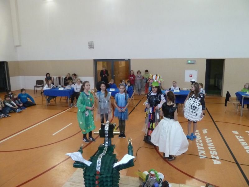 W dniu 09 grudnia 2013r. w Szkole Podstawowej im. Janusza Korczaka w Żarnowcu gościliśmy ekologiczne drużyny szkół podstawowych z Krokowej, Sławoszyna i Wierzchucina, które razem z naszą drużyną rywalizowały w gminnym konkursie pod hasłem: „ Nasze rady na odpady”. Uczestnicy zmagali się w dwóch rundach pytań ustnych, zadaniach pisemnych, grze zręcznościowej oraz wykazali się praktycznymi umiejętnościami w segregowaniu odpadów. Dodatkowe dwa zadania polegały na prezentacji strojów ekologicznych i przygotowaniu pracy technicznej z wykorzystaniem różnorodnych materiałów odpadowych, tzw.: „Śmieciozaura”.Nad prawidłowym przebiegiem imprezy i oceną zawodników czuwała komisja w składzie: Pani Iwona Tylicka- kierownik referatu gospodarki odpadami i ochrony środowiska w Urzędzie Gminy Krokowa, Pani Natalia Abraham - pracownik tegoż referatu oraz Pani Maja Jaromirska- Lewińska- Dyrektor Krokowskiego Centrum Kultury. Całej imprezie dopingowała publiczność , składająca się z uczniów klas 4-6 Szkoły Podstawowej im. Janusza Korczaka w Żarnowcu wraz z nauczycielami. Wszyscy byli pod wielkim wrażeniem kreatywności i wiedzy uczestników X Festiwalu Ekologicznego. Przed ogłoszeniem werdyktu zostały przedstawione wyniki szkolnych konkursów na najciekawszy strój ekologiczny i „ Śmieciozaura”, które następnie reprezentowały naszą szkołę podczas konkursu gminnego. Zwycięzcami zostali: