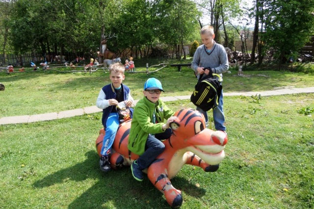 Dnia 8 maja 2014r. dzieci z klas I-III pojechały na wycieczkę do PARKU MINIATUR W SZTRYSZEJ BUDZIE w ramach języka kaszubskiego. Każdy z nas pewnie marzy o dalekiej podróży na przykład do Paryża, Nowego Yorku lub Szymbarku na Kaszubach… W Stryszej Budzie odbyliśmy szybką podróż dookoła świata. Jest to miejsce na wskroś magiczne, takie które urzekło Nas swoim urokiem, które warto zwiedzić. Co prawda pełno w nim jarmarcznych straszaków, figurek i zabawek, ale dzieci nie zwracały na to uwagi, skupiły swą uwagę na misternie wykonane miniatury budowli pochodzących z całego świata. W jednym miejscu, w jednej skali 1:25, można było zobaczyć wierne kopie najbardziej charakterystycznych obiektów Kaszub: kościoły, zamki i dwory. Swoje miejsce znalazły m.in: Zamek w Bytowie, Kaplice Kalwarii Wejherowskiej, Latarnie Morskie w Helu, Jastarni, Rozewiu, Kolegiata Kartuska, Dworek Wybickiego z Będomina, z Salina, Kościoły z Sierakowic, Sianowa, Wygody, wiatrak typu Holender, są osady wiejskie i kilkanaście innych makiet. Imponująca jest makieta Kościoła Mariackiego z Gdańska - największej świątyni z cegły na świecie. Kaszuby to motyw przewodni - jednak w parku są również atrakcje z Polski i ze świata. Statua Wolności, Sfinks, Chrystusa z Rio, Mur Chiński czy Krzywa Wieża w Pizie, to tylko niektóre obiekty które znajdują się w parku w Stryszej Budzie. Oprócz tego jest tam Bajkowa Kraina, czyli zbiór postaci ze znanych bajek i baśni: Królewna Śnieżka i 7 krasnoludków, Jaś i Małgosia, Królowa Śniegu, Trzy Świnki, Kaczor Donald, Myszka Miki. Są też aktualne Gwiazdy najmłodszych - Spiderman, bohaterowie Epoki Lodowcowej, Shreka i innych. Łącznie ponad 60 figur. Na terenie parku funkcjonuje punkt gastronomiczny, gdzie można było kupić sobie coś pysznego do jedzenia. Dodatkowo dla najmłodszych do dyspozycji była - trampolina, zjeżdzalania dmuchana, plac zabaw i minii zoo. Zabawa w parku w Stryszej Budzie była przednia. Polecamy wszystkim, którzy chcą zobaczyć ciekawe budowle świata i dodatkowo pobawić się na pięknie przygotowanym placu zabaw.