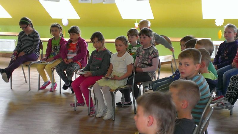 Następnie odbyło się rozdanie nagród w konkursie plastycznym pt. „Litery” (organizator Gminna Biblioteka Publiczna w Krokowej). Zdobywczynią I miejsca została Małgorzata Jetke, II miejsce zajął Maksymilian Białk, a III - Julia Dominik, uczniowie klasy II. Wyróżnienia zdobyli: Zuzanna Krefta i Kinga Okuń z klasy I oraz Jakub Bogusławski z klasy II.